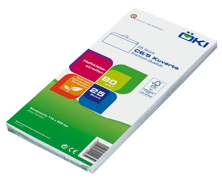 Die ÖKI Briefumschlüsse DIN lang ohne Fenster sind die ideale Wahl für all deine Versandbedürfnisse. Diese hochwertigen Umschläge überzeugen durch ihre blickdichte Beschaffenheit, die dafür sorgt, dass der Inhalt stets sicher und privat bleibt. Hergestellt aus holzfreiem Papier, sind sie nicht nur umweltfreundlich, sondern auch chlorfrei gebleicht, was sie zu einer nachhaltigen Option für umweltbewusste Verbraucher macht. Mit einem Papiergewicht von 80 g/m² bieten sie die perfekte Balance zwischen Stabilität und Flexibilität, sodass deine Dokumente sicher an ihrem Ziel ankommen. Die Umschläge sind in einem eleganten Offset weiß gehalten, was ihnen ein professionelles und ansprechendes Erscheinungsbild verleiht. Dank der haftklebenden Klebung ist das Verschließen der Umschläge besonders einfach und zuverlässig. Du musst dir keine Gedanken über das Verkleben mit Klebeband oder das Einlegen von zusätzlichen Verschlüssen machen – einfach die Schutzfolie abziehen und den Umschlag schließen. In jeder Packung sind 25 Stück enthalten, was sie ideal für kleine und große Postsendungen macht. Ob für private Korrespondenz, geschäftliche Briefe oder Einladungen, die ÖKI Briefumschläge bieten dir die Flexibilität, die du benötigst. Mit ihrem durchdachten Design und den umweltfreundlichen Materialien sind sie nicht nur praktisch, sondern auch eine verantwortungsvolle Wahl für den täglichen Gebrauch. Vertraue auf die Qualität von ÖKI und erlebe die Vorteile dieser erstklassigen Briefumschläge.Technische Daten
