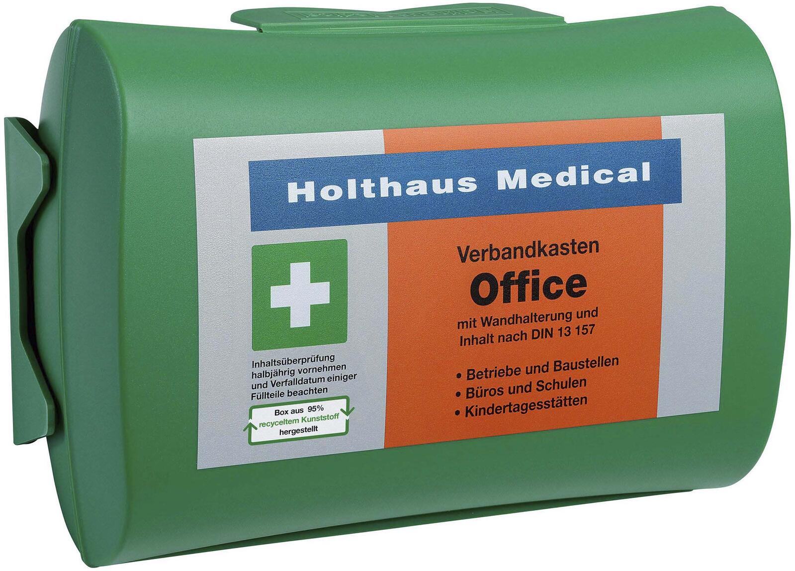Der Verbandskasten besteht aus strapazierfähigem Polypropylen, das für Langlebigkeit und Robustheit sorgt. Die grüne Farbe macht ihn leicht erkennbar und findet sich in der Serie Office wieder. Holthaus Medical steht für qualitativ hochwertige Produkte, die deinen Anforderungen im Alltag gerecht werden.
