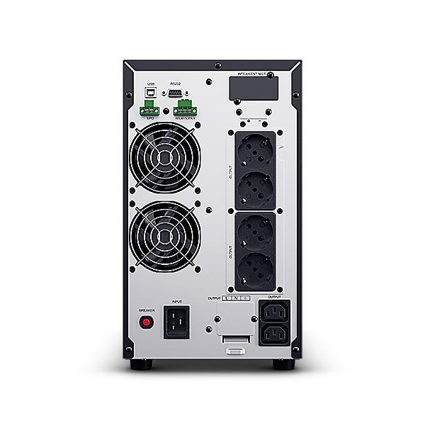 Die USV verfügt über eine Farb-LCD-Anzeige, über die der Benutzer das Stromversorgungssystem überwachen und Einstellungen einfach konfigurieren kann. Daneben steht für Sonderanwendungen eine Relais-Trockenkontaktschnittstelle zur Verfügung. Diese Modelle haben eine automatische Erkennung von extern angeschlossenen Batteriemodulen um automatisch die Anzahl der angeschlossenen Batteriemodule (EBM) zu erkennen und so eine korrekte Laufzeit der USV anzuzeigen. Die drehzahlvariable Lüftersteuerung bietet durch das automatische Wärmemanagement auf der Grundlage der Belastung eine reduzierte Geräuschentwicklung.