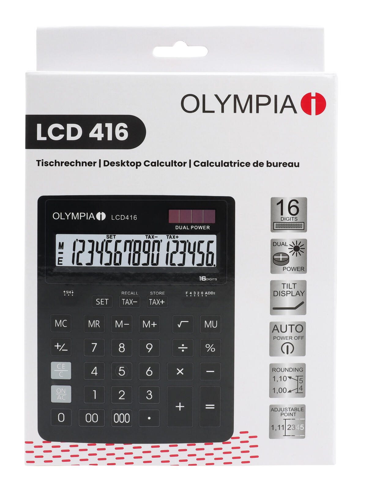 Der Olympia LCD-416 Tischrechner verbindet Funktionalität mit einem ansprechenden Design und ist somit eine praktische Lösung für alle, die einen zuverlässigen und energieeffizienten Taschenrechner suchen.