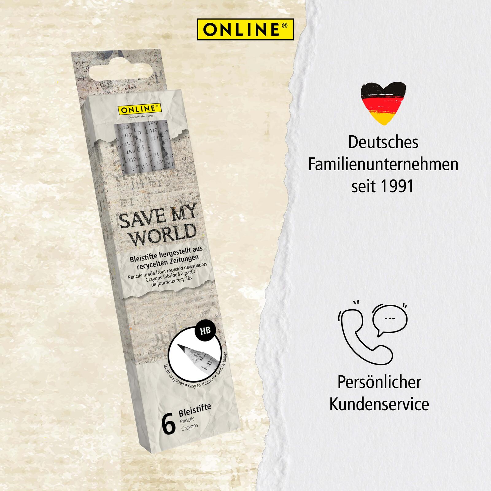 Die ONLINE® Bleistifte Save My World sind die perfekte Wahl für kreative Köpfe, die Wert auf Qualität und Nachhaltigkeit legen. Mit einem eleganten grauen Schaft und einem runden Design bieten diese Bleistifte nicht nur eine ansprechende Optik, sondern auch eine hervorragende Handhabung für Rechts- und Linkshänder. Diese Bleistifte zeichnen sich durch ihren Härtegrad HB aus, der ein ideales Gleichgewicht zwischen Weichheit und Festigkeit bietet. So kannst du sowohl präzise Linien ziehen als auch schattieren, ohne dass die Mine bricht oder verschmiert. Die hohe Minenstabilität und Bruchfestigkeit garantieren eine lange Lebensdauer, sodass du dich ganz auf deine kreativen Projekte konzentrieren kannst. In jeder Packung erhältst du sechs Bleistifte, die sich hervorragend für den täglichen Gebrauch in Schule, Büro oder beim Zeichnen eignen. Die Serie Save My World steht nicht nur für hochwertige Schreibwaren, sondern auch für ein umweltbewusstes Konzept. Mit diesen Bleistiften trägst du aktiv zum Schutz unserer Umwelt bei, während du gleichzeitig deine Ideen und Gedanken zu Papier bringst. Die runde Schaftform sorgt für einen bequemen Griff, der auch bei längeren Schreib- oder Zeichensitzungen angenehm ist. Egal, ob du skizzierst, Notizen machst oder kreative Entwürfe erstellst, die ONLINE® Bleistifte Save My World sind stets an deiner Seite und unterstützen dich dabei, deine Visionen zum Leben zu erwecken.Technische Daten