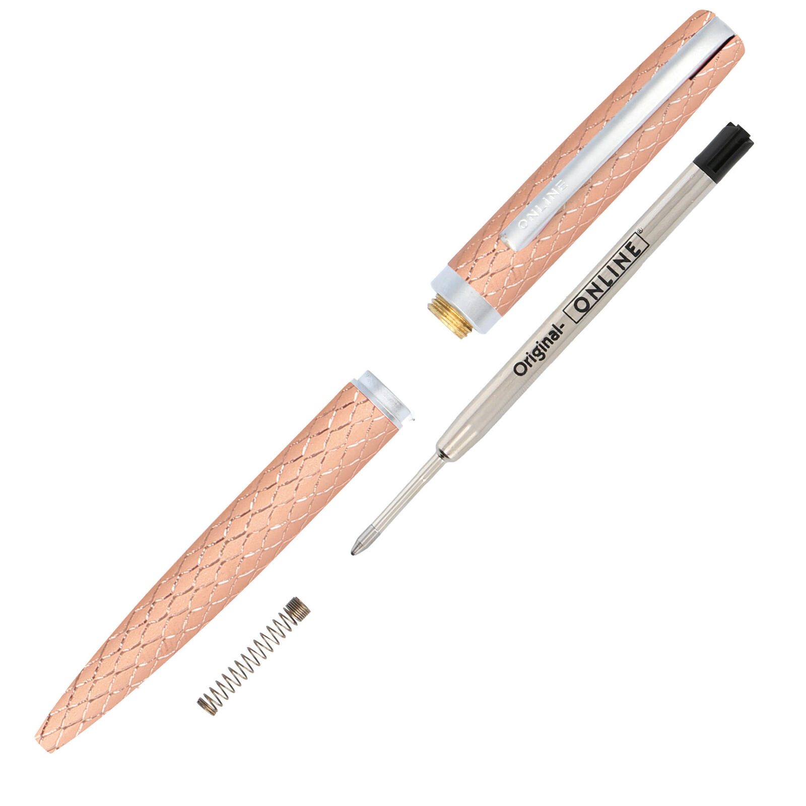 Ein besonderes Merkmal dieses Kugelschreibers ist das mitgelieferte Geschenketui, das ihn nicht nur zu einem praktischen Werkzeug, sondern auch zu einem stilvollen Geschenk macht. Die elegante Farbe in Rosé verleiht ihm eine edle Note und macht ihn zu einem Blickfang.