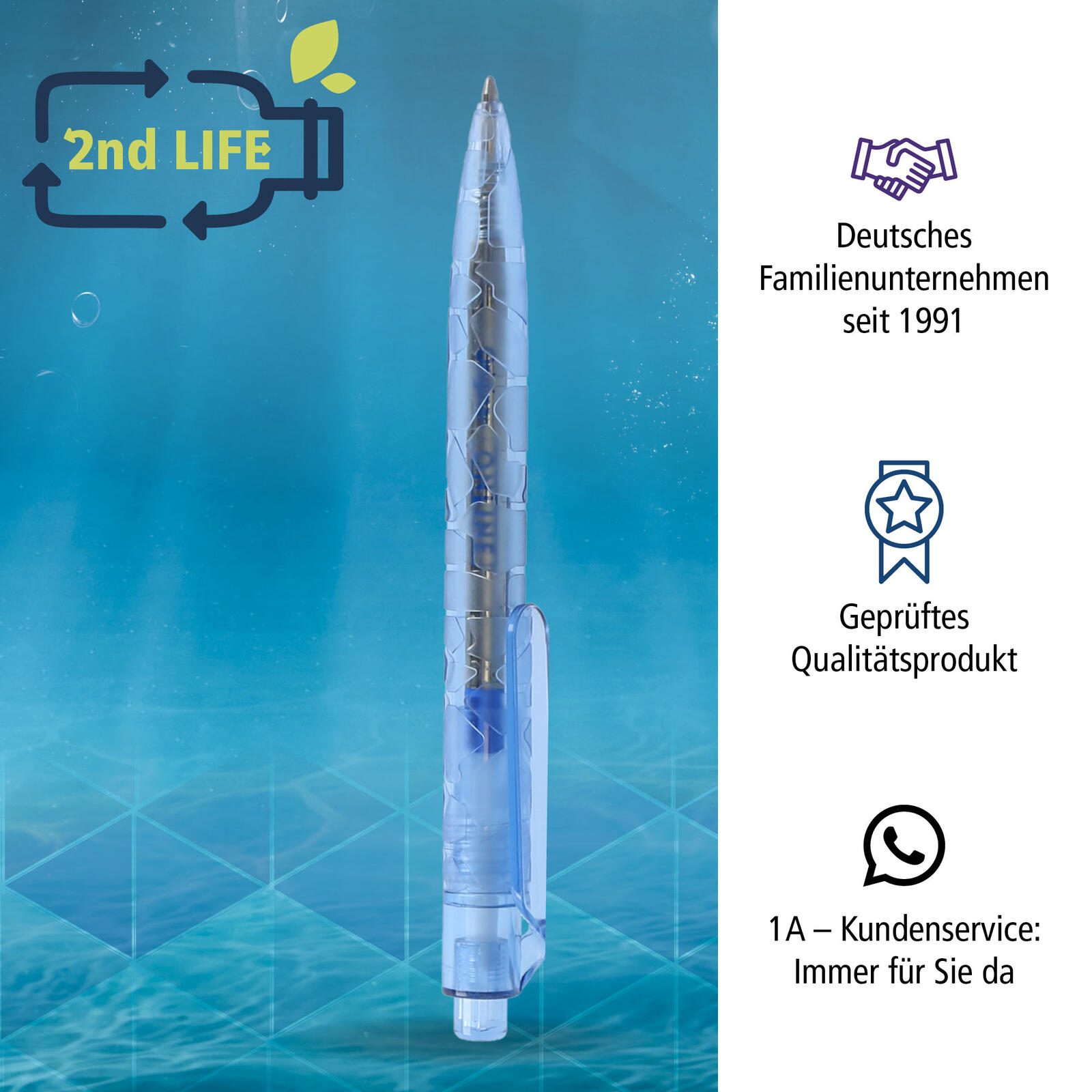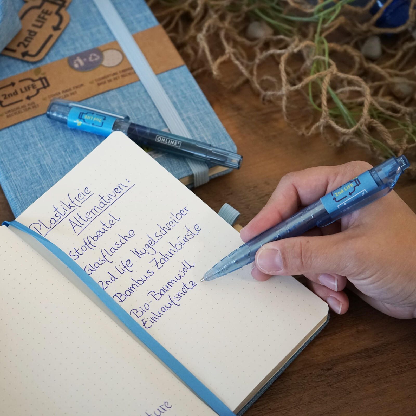Der ONLINE® Kugelschreiber Online Kugelsch. 2nd LIFE bu in 0,6 mm Blau ist ein umweltfreundlicher Druckkugelschreiber, der dich im Alltag begleitet. Sein Gehäuse aus recyceltem PET-Kunststoff in den Farben Blau und Schwarz verleiht ihm nicht nur eine moderne Optik, sondern zeigt auch dein Engagement für Nachhaltigkeit.