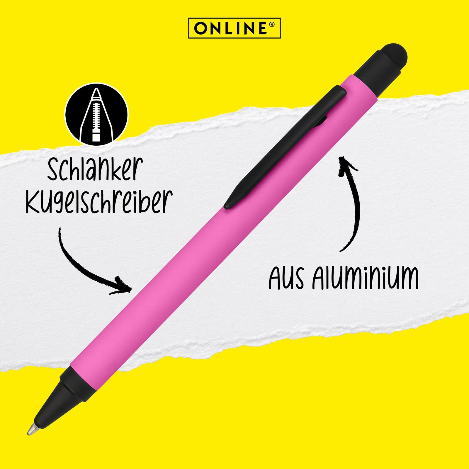 ONLINE® ALU Stylus Kugelschreiber pink 0.6 mm Schreibfarbe: Blau