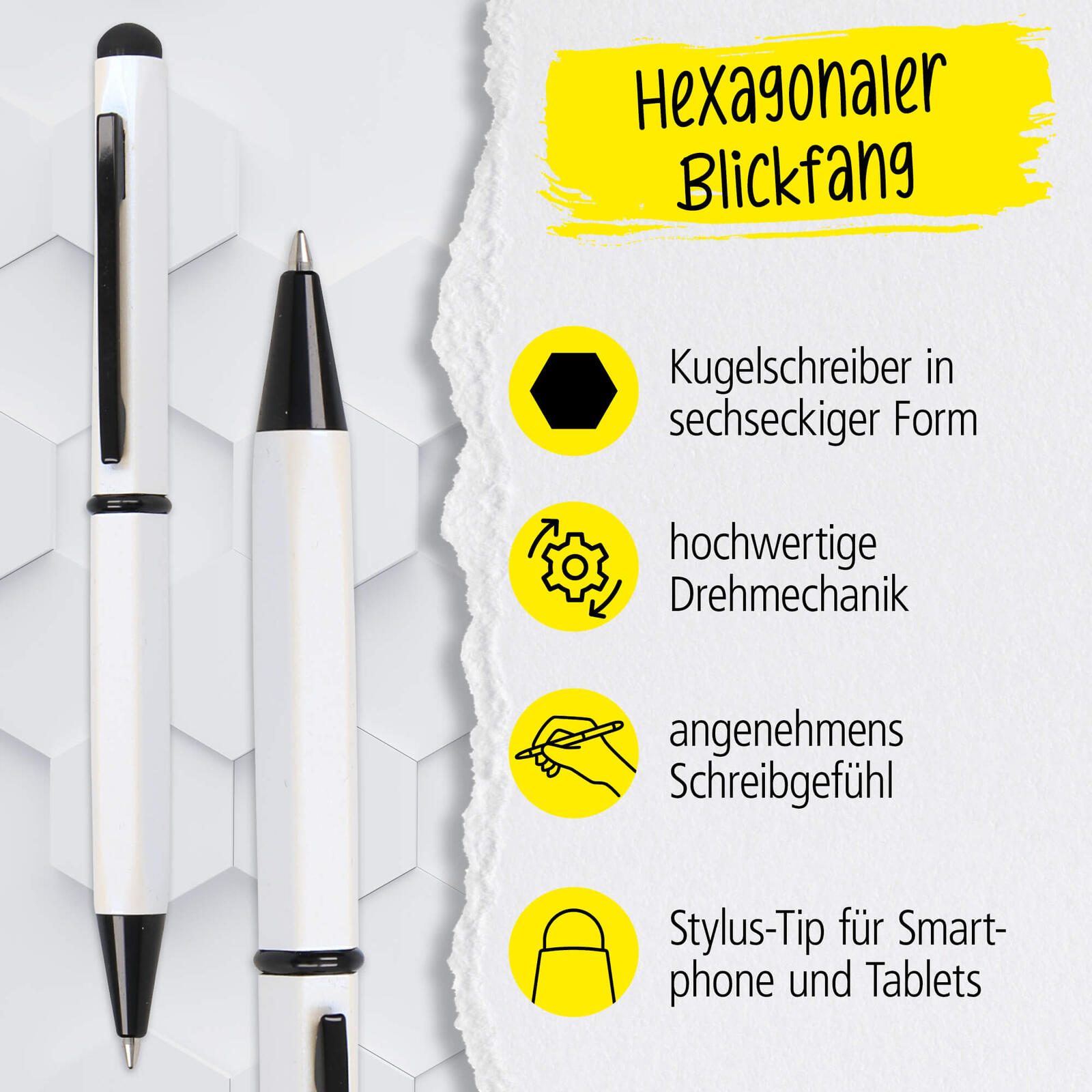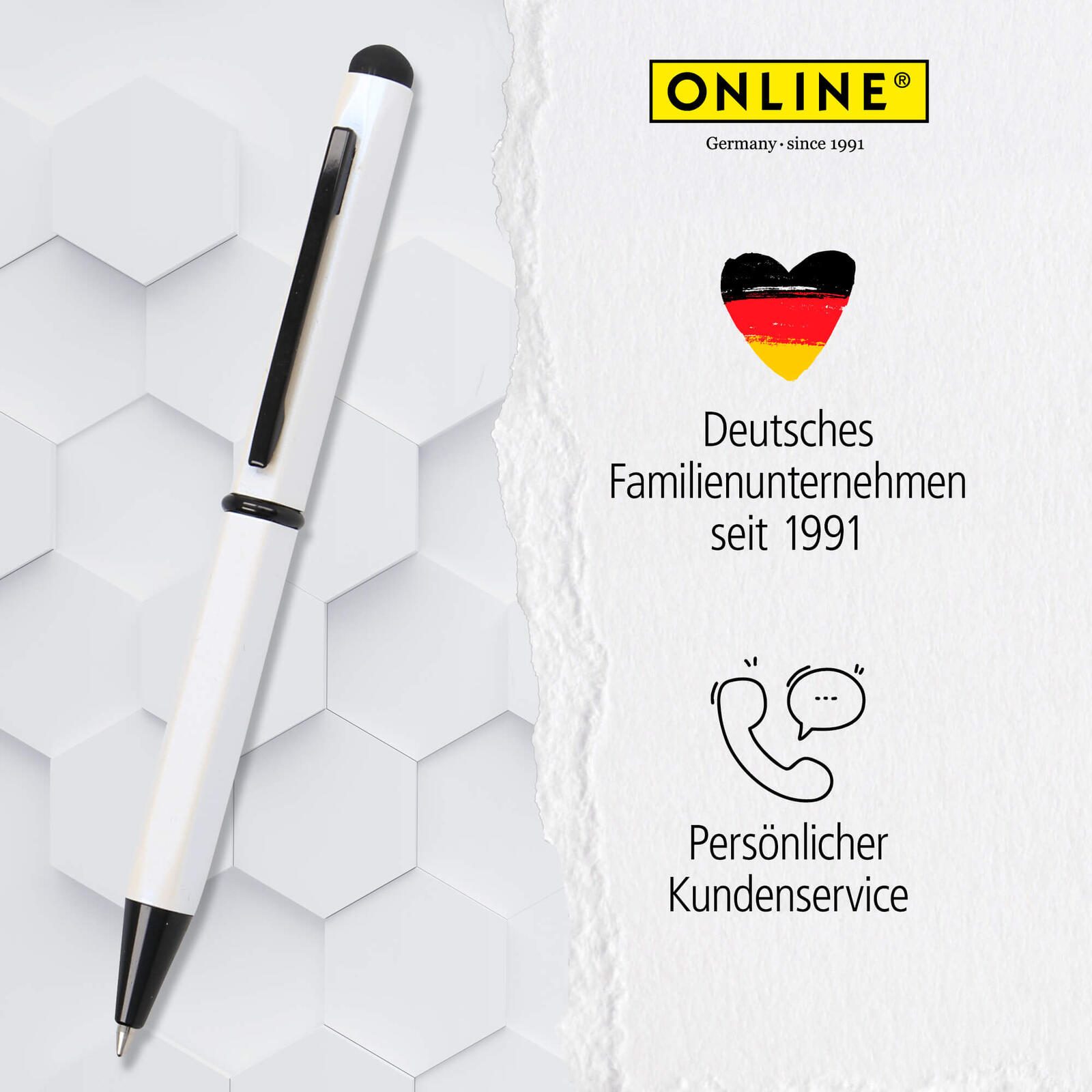 ONLINE® Hexagon Stylus Kugelschreiber weiß 0.6 mm Schreibfarbe: Blau