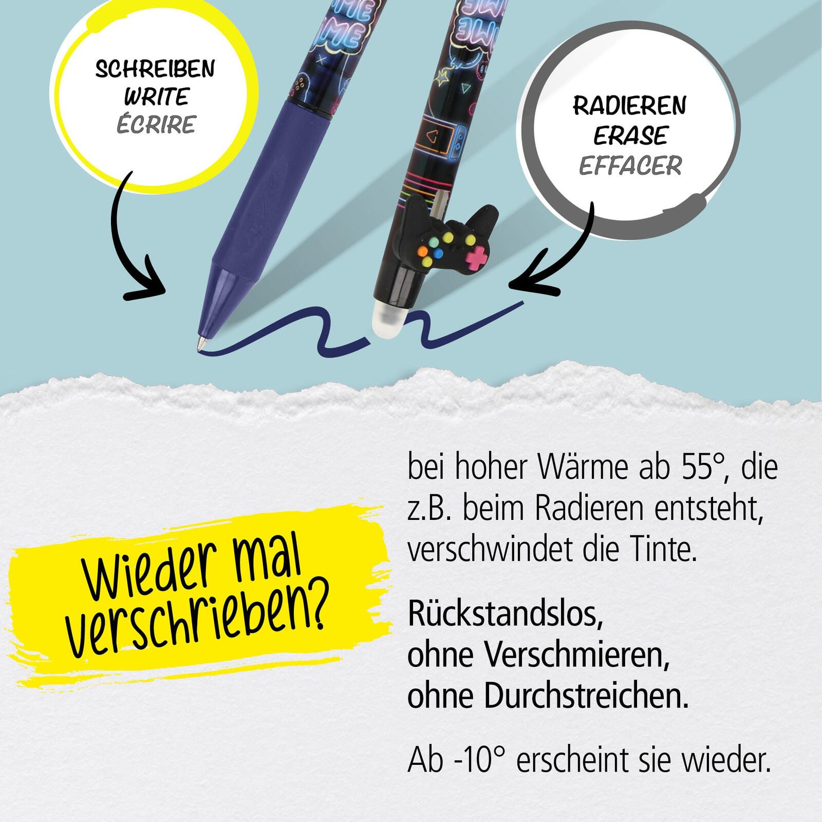 - mit Clip, mit Druckmechanik, nachfüllbar, radierbar