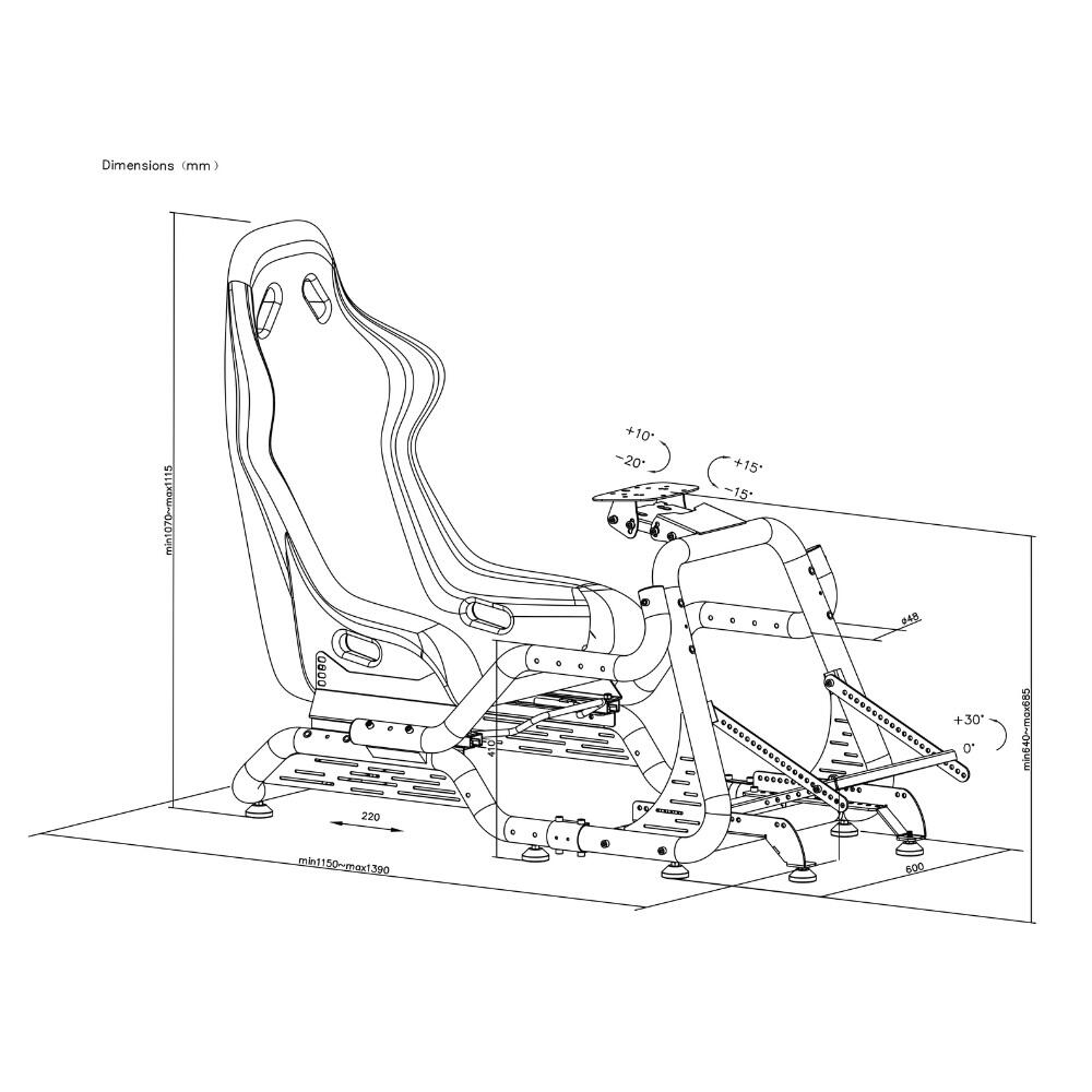 - Höhen- und neigungsverstellbarer Lenkradsockel, kompatibel mit Force Feedback Direct Drive und Courroie Technologien.