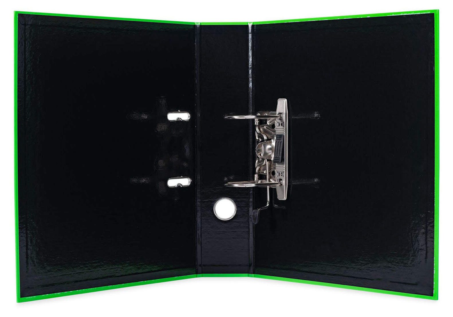 Die hochwertige Hebelmechanik garantiert eine einfache Handhabung und ermöglicht ein schnelles Einordnen sowie Entnehmen von Seiten. Zudem verfügt der Ordner über praktische Raumsparschlitze, die dir helfen, auch in engen Regalen Platz zu sparen. Ein Griffloch ist ebenfalls vorhanden, was die Handhabung erleichtert und dir den Zugriff auf den Ordner erleichtert, selbst wenn er im Regal steht.