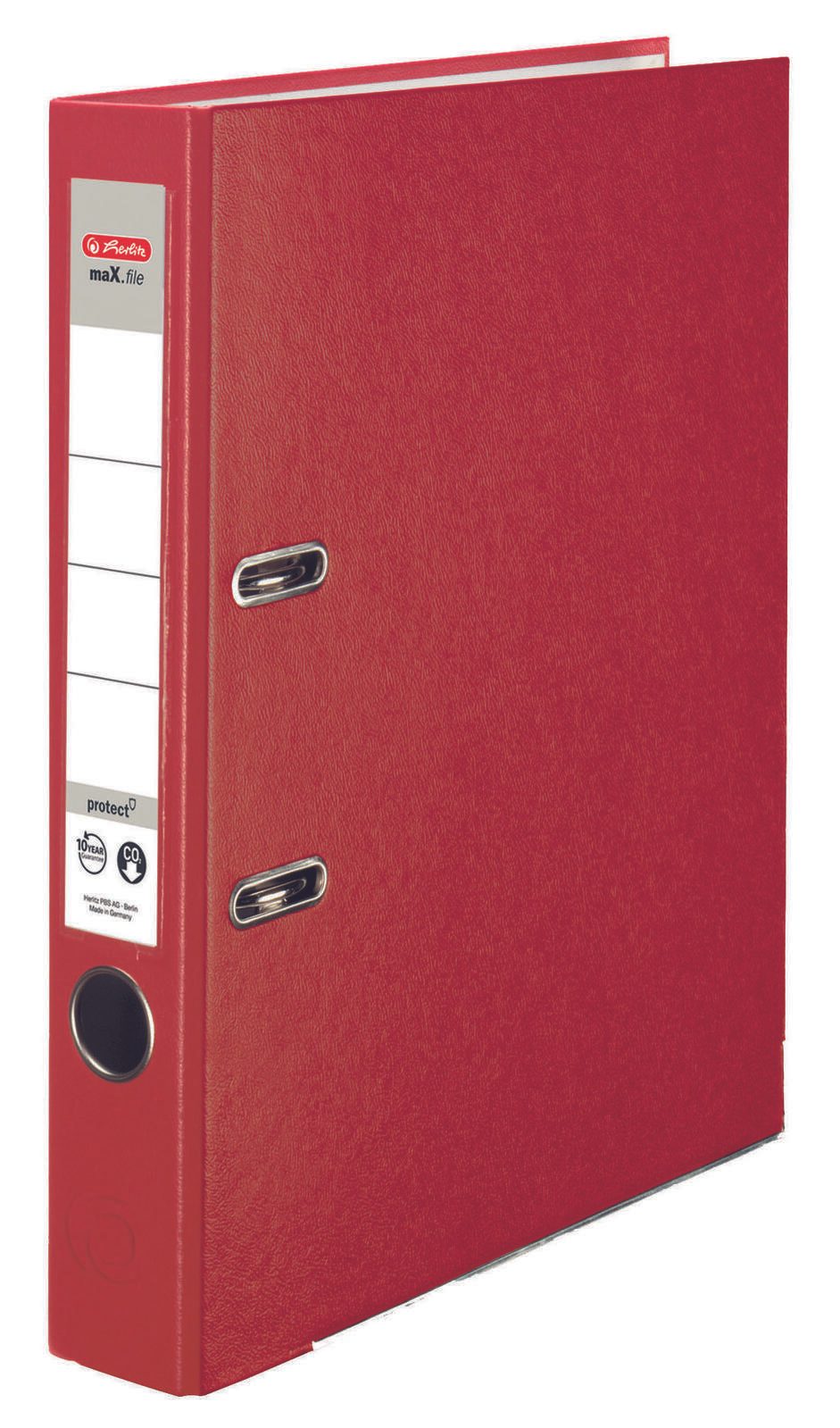 Der herlitz Ordner mit einer Rückenbreite von 5 cm ist die perfekte Lösung für die übersichtliche Ablage und Organisation deiner DIN A4 Dokumente. Mit seinem ansprechenden roten Design und der genarbten Optik bringt dieser Ordner nicht nur Farbe, sondern auch Stil in dein Büro oder Zuhause. Hergestellt aus hochwertigem Kunststoff, garantiert er Langlebigkeit und eine einfache Handhabung. Ein praktisches Merkmal ist das einsteckbare Rückenschild, das dir ermöglicht, den Inhalt des Ordners individuell zu kennzeichnen und schnell zu finden. Dank der Präzisions-Hebelmechanik kannst du deine Unterlagen mühelos einlegen und entnehmen, was dir Zeit und Mühe spart. Der Ordner ist zudem mit Raumsparschlitzen ausgestattet, die eine platzsparende Aufbewahrung ermöglichen und die Nutzung von Regalen effizient gestalten. Das Griffloch sorgt dafür, dass du den Ordner bequem aus dem Regal nehmen kannst, ohne ihn unnötig zu belasten. Der Kantenschutz schützt die Ecken des Ordners vor Abnutzung und sorgt dafür, dass er auch bei häufiger Nutzung gut aussieht. Die Kombination aus Papier und Polypropylen (PP) als Oberflächenmaterial sorgt für eine ansprechende Haptik und eine einfache Reinigung. Mit dem herlitz Ordner bist du bestens ausgestattet, um deine Dokumente sicher und ordentlich zu verwahren. Egal, ob für das Büro, die Schule oder das Homeoffice, dieser Ordner erfüllt alle Anforderungen an Funktionalität und Design. Vertraue auf die Qualität von herlitz und erlebe, wie einfach und angenehm die Organisation deiner Unterlagen sein kann.Technische Daten