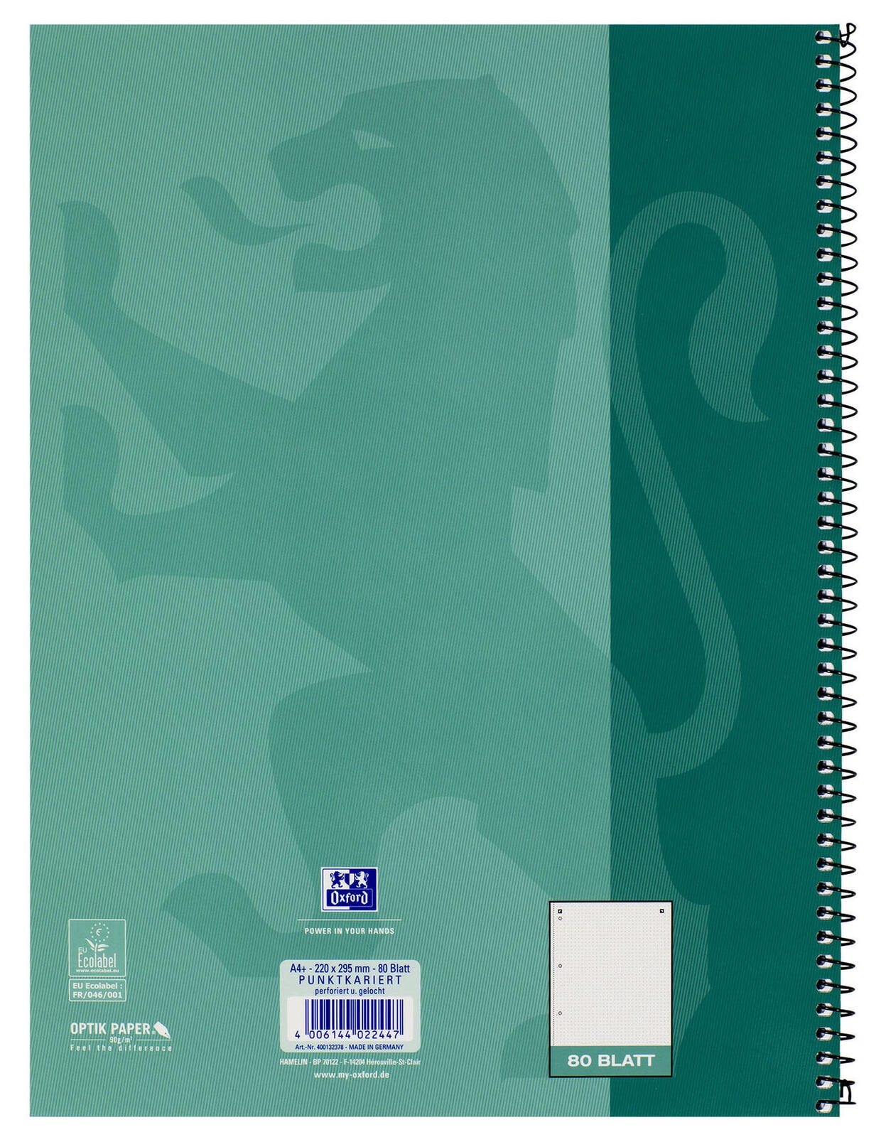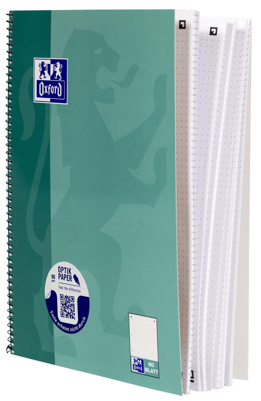 Der OXFORD Collegeblock DIN A4 punktraster ist die ideale Wahl für Schüler, Studenten und alle, die Wert auf hochwertige Schreibmaterialien legen. Mit 80 Blatt bietet dieser Collegeblock ausreichend Platz für Notizen, Skizzen und kreative Ideen. Das Papier hat ein Gewicht von 90 g/m², was für eine angenehme Haptik und eine ausgezeichnete Schreibeigenschaft sorgt. Die Ausführung der Lineatur im punktraster-Format ermöglicht es dir, deine Gedanken klar und strukturiert festzuhalten. Dabei ist der Collegeblock randlos gestaltet, was dir mehr Platz zum Schreiben und Zeichnen bietet, ohne dass du durch störende Ränder eingeschränkt wirst. Das DIN A4 Format ist besonders praktisch, da es sich leicht in Taschen und Ordnern verstauen lässt. Ein weiteres Merkmal dieses Collegeblocks ist die flexible Bindung, die dir ermöglicht, die Seiten einfach umzublättern, ohne dass sie beschädigt werden. Die 4-fach-Lochung sorgt dafür, dass du die Blätter problemlos in einen Ordner abheften kannst. Das Papier ist holzfrei und elementar chlorfrei gebleicht (ECF), was für eine umweltfreundliche Herstellung spricht. Der OXFORD Collegeblock ist nicht nur funktional, sondern auch ästhetisch ansprechend. Die weiße Papierfarbe sorgt für einen klaren Kontrast zu deinen Notizen und Zeichnungen. Durch die Microperforation kannst du die Blätter bei Bedarf sauber und einfach abtrennen. Mit dem OXFORD Collegeblock DIN A4 punktraster erhältst du ein zuverlässiges Schreibwerkzeug, das in Schule und Studium unverzichtbar ist. Vertraue auf die Qualität von OXFORD und genieße das Schreiben auf einem Papier, das speziell für deine Bedürfnisse entwickelt wurde.Technische Daten