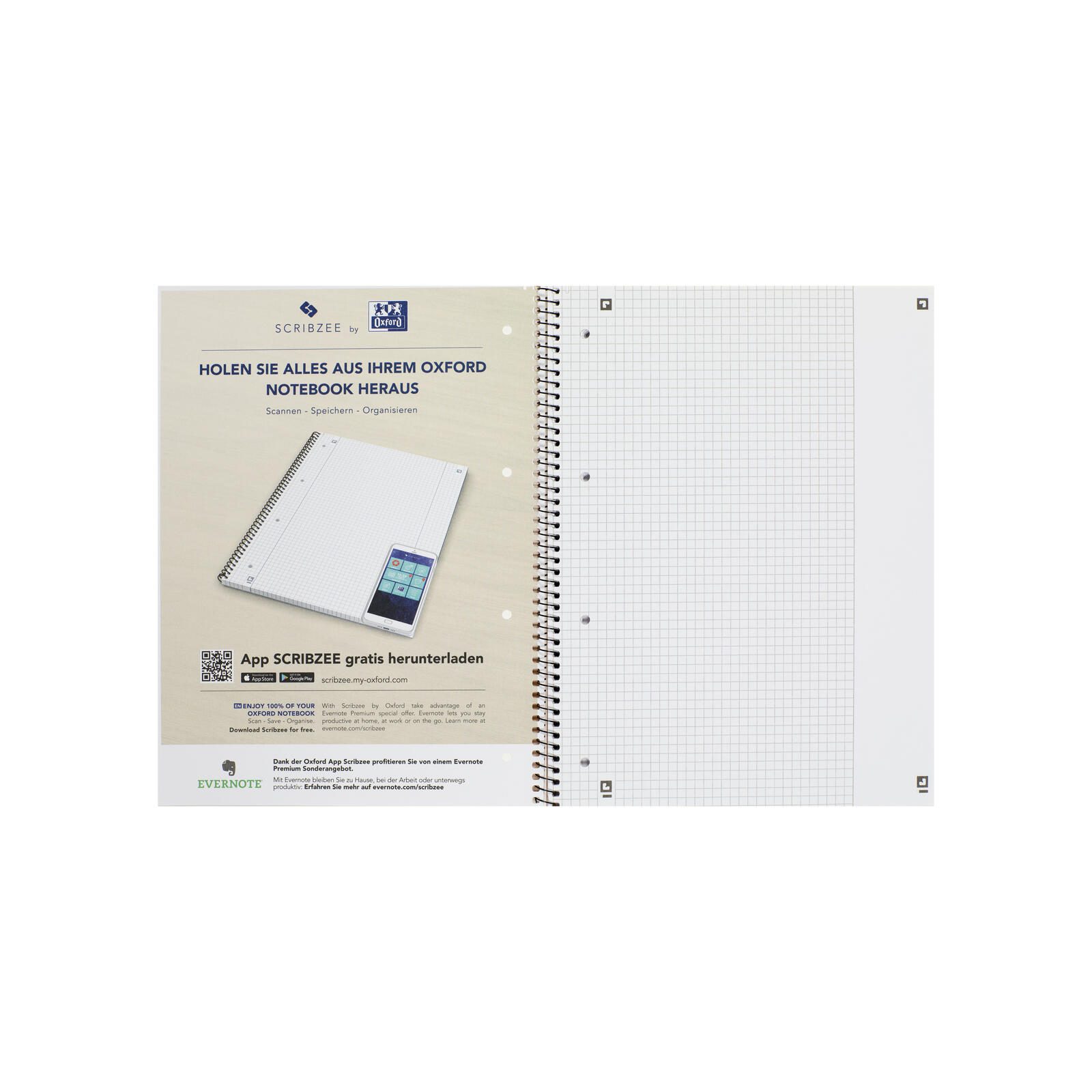 Die flexible Bindung ermöglicht es dir, das Blatt leicht umzublättern und sorgt dafür, dass der Block stets flach auf dem Tisch liegt. Die klare Karierung der Seiten unterstützt dich dabei, deine Gedanken strukturiert festzuhalten und sorgt für eine ordentliche Schriftführung. Der Außenrand bietet zusätzlichen Platz für Notizen am Rand, was die Organisation deiner Inhalte erleichtert.