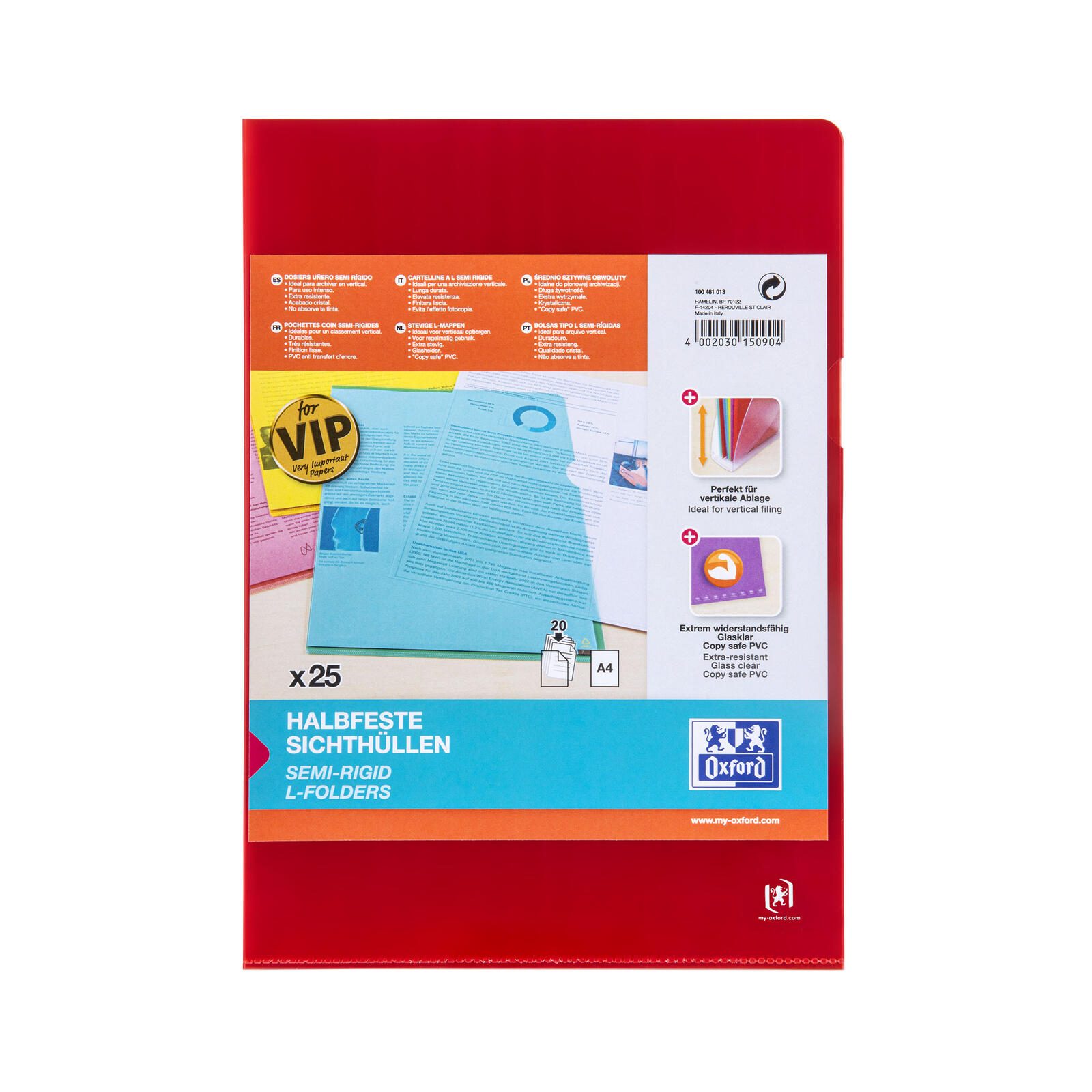 Die OXFORD Sichthüllen DIN A4 glatt 0.15 mm sind die ideale Lösung für die professionelle und stilvolle Präsentation deiner Dokumente. Mit einem kräftigen roten Farbton setzen diese Hüllen nicht nur deine Unterlagen perfekt in Szene, sondern sorgen auch dafür, dass sie stets gut geschützt sind. Die Hüllen bestehen aus hochwertiger PVC-Hartfolie, die dokumentenecht ist und somit die Langlebigkeit deiner wichtigen Papiere gewährleistet.