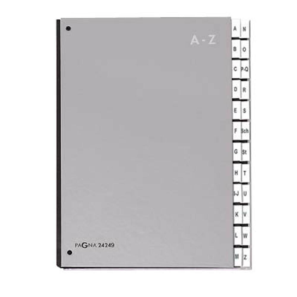 Der PAGNA Pultordner A-Z in Silber ist die ideale Lösung, um Dokumente und Korrespondenz übersichtlich und geschützt aufzubewahren. Mit seinen 24 Fächern, die von A bis Z geordnet sind, ermöglicht er einen schnellen Zugriff auf wichtige Unterlagen. Hergestellt aus robuster Hartpappe und Kunststoff, verfügt der Ordner zudem über einen farbigen Papiereinband in edler Leinenstruktur. Der Pultordner zeichnet sich durch seinen dehnbaren Zieharmonika-Geweberücken aus, der nicht nur Flexibilität bietet, sondern auch für Stabilität sorgt. Durch die praktische Registerführung behältst du immer den Überblick über den Inhalt. Mit Abmessungen von 265 mm x 30 mm x 340 mm bietet der Ordner genügend Platz für eine Vielzahl von Dokumenten, während das moderne Silberdesign eine stilvolle Ergänzung für deinen Arbeitsbereich darstellt. Der PAGNA Pultordner A-Z - silber ist nicht nur funktional, sondern auch optisch ansprechend. Halte deine Unterlagen geordnet und geschützt, damit du stets effizient arbeiten kannst.Technische Daten