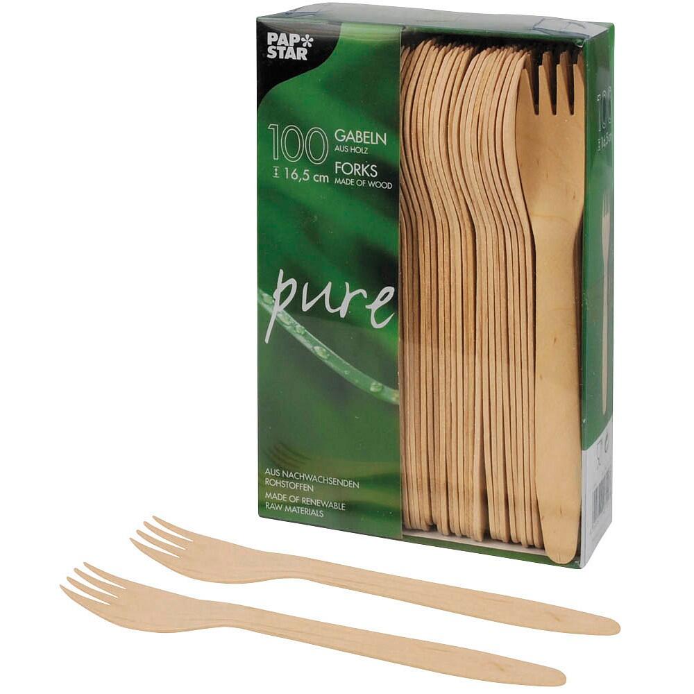 PAPSTAR Einweg-Gabeln pure Holz - 100 Stück