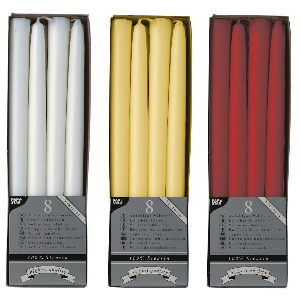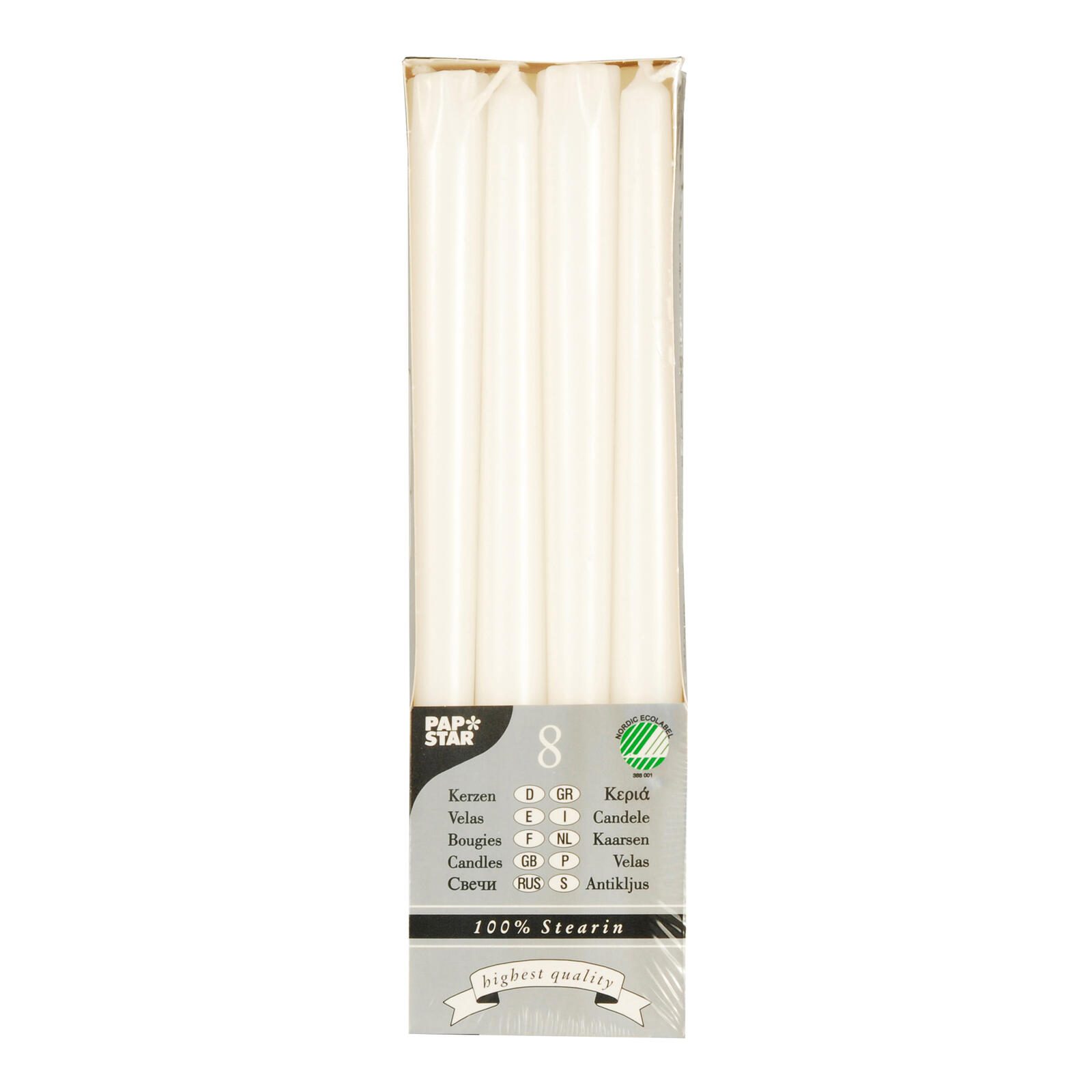 Die PAPSTAR Kerzen mit einer Höhe von 25 cm und einem Durchmesser von 2,2 cm präsentieren sich in einem eleganten Weiß und sind die perfekte Wahl für jeden Anlass. Diese hochwertigen Leuchterkerzen zeichnen sich durch ihr ausgezeichnetes Brennverhalten aus, das für eine helle und ruhige Flamme sorgt. Du wirst die angenehme Atmosphäre, die sie schaffen, sofort spüren, sei es bei festlichen Anlässen oder beim gemütlichen Beisammensein. Ein weiteres bemerkenswertes Merkmal dieser Kerzen ist der trockene Brennteller, der verhindert, dass Wachs auf den Tisch tropft und somit für eine saubere Umgebung sorgt. Die hohe Formstabilität der PAPSTAR Kerzen garantiert, dass sie auch während des Brennens ihre Form behalten, was sie besonders langlebig und zuverlässig macht. Mit einer Verpackungseinheit von 8 Stück bist du bestens ausgestattet, um dein Zuhause stilvoll zu dekorieren oder um sie als durchdachtes Geschenk zu verwenden. Die Verwendung von hochwertigem Paraffin als Material sorgt nicht nur für eine saubere Verbrennung, sondern auch für eine ansprechende Optik und ein angenehmes Lichtspiel. Die PAPSTAR Kerzen sind somit nicht nur funktional, sondern auch ein echter Blickfang in jedem Raum. Ob auf dem Esstisch, im Wohnzimmer oder bei festlichen Feierlichkeiten, diese Kerzen verleihen jedem Ambiente eine besondere Note. Entdecke die vielseitigen Einsatzmöglichkeiten der PAPSTAR Kerzen und genieße die zeitlose Eleganz, die sie deinem Zuhause verleihen.Technische Daten