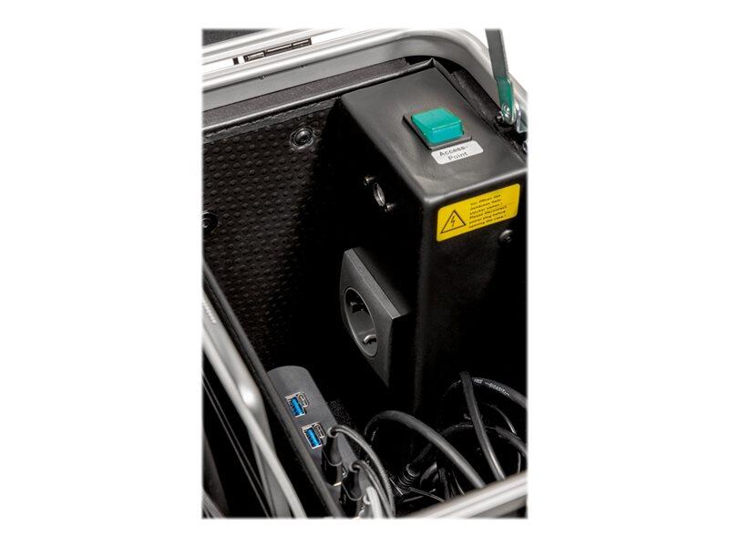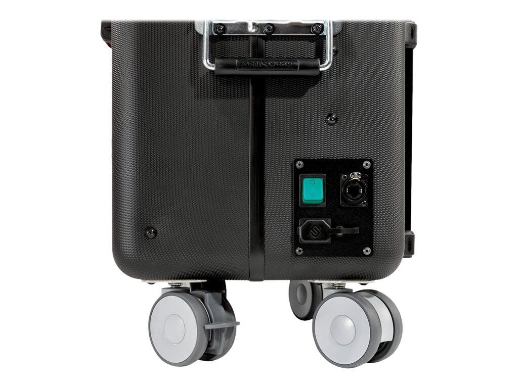 Mit dem mobilen Aufbewahrungssystem PARAPROJECT® Case TC10 Plus verstauen Sie nicht nur Ihre Tablets sicher, sondern können Ihr Equipment zusätzlich laden und von A nach B transportieren. Die mobile Aufbewahrungsstation bietet Platz für bis zu 10 Tablets mit einer maximalen Größe von 11,5“. Ob offen oder geschlossen, der Koffer funktioniert für alle iPads®, Android und Windows Tablets, die sich über USB-A oder USB-C® aufladen lassen. Die integrierten TwinCharge Module machen es möglich. Zudem laden sie nach den QuickCharge Standards und reagieren flexibel nach USB-PD (Power Delivery). Ein weiteres Highlight der intelligenten Aufbewahrungslösung ist der im Korpus verbaute Elektro Tower mit einer Ein-/ Ausschaltfunktion sowie Steckdose für einen Accesspoint. Zwei im Deckel befestigte Taschen für Zubehör und Kleinteile bieten zusätzlichen Nutzen. Durch den außen integrierten Hauptschalter lässt dich der komplette Case bequem ein- und ausschalten. Seine kugelgelagerten Leichtlaufräder, die stabilen, beidseitigen Tragegriffe und der 4-fache Teleskopauszug ermöglichen einen komfortablen Transport des PARAPROJECT® Case TC10 Plus. Die schwarze Kofferschale aus X-ABS Kunststoff ist äußerst robust und schützt somit vor äußeren Einflüssen. Zwei im Bodenbereich integrierte Axial-Lüfter sorgen zudem für eine optimale Luftzirkulation und schützen zuverlässig vor Überhitzung.