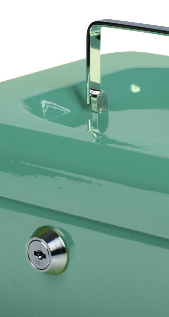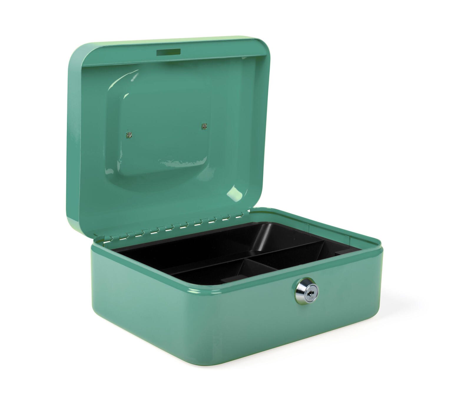 Die grüne Geldkassette von pavo ist ein praktisches und sicheres Aufbewahrungsmöglichkeit für dein Geld. Mit ihrem herausnehmbaren Einsatz bietet sie eine flexible Nutzung und Ordnung für deine Münzen und Scheine. Die Maße von 20,0 x 16,0 x 9,0 cm machen sie handlich und platzsparend.