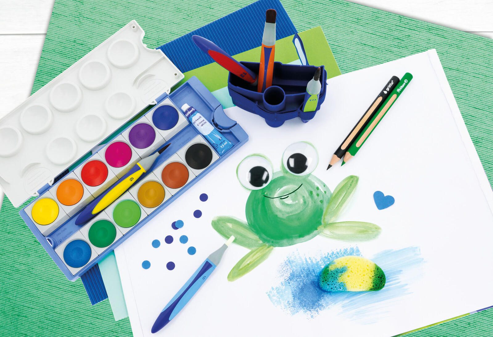 Der Pelikan Wasserfarbkasten ist die ideale Wahl für kreative Köpfe, die das Malen mit Wasserfarben lieben. Mit insgesamt 12 lebendigen Farben und einer Tube Deckweiß bietet dieser Farbkasten alles, was du für deine künstlerischen Projekte benötigst. Die Farbpalette umfasst eine Vielzahl von Tönen, die sich perfekt miteinander kombinieren lassen, um einzigartige Kunstwerke zu schaffen. Die hohe Deckkraft der Farben sorgt dafür, dass deine Bilder strahlend und lebendig wirken. Die lichtechten Pigmente garantieren, dass deine Kunstwerke auch nach längerer Zeit nicht verblassen. Egal, ob du ein erfahrener Künstler oder ein Anfänger bist, die benutzerfreundliche Anwendung des Wasserfarbkastens macht es dir leicht, beeindruckende Ergebnisse zu erzielen. Der Kasten ist in einem ansprechenden blauen Design gehalten, das nicht nur gut aussieht, sondern auch praktisch ist. Dank der kompakten Größe lässt sich der Pelikan Wasserfarbkasten problemlos transportieren, sodass du überall kreativ sein kannst – sei es im Freien oder in deinem eigenen Atelier. Mit dem enthaltenen Deckweiß kannst du zusätzlich Highlights setzen und deinen Bildern eine besondere Tiefe verleihen. Ob für Schulprojekte, Hobbymalerei oder kreative Workshops, dieser Wasserfarbkasten ist ein unverzichtbares Werkzeug für jeden Künstler. Pelikan steht für Qualität und Zuverlässigkeit, und dieser Farbkasten ist keine Ausnahme. Lass deiner Kreativität freien Lauf und entdecke die vielfältigen Möglichkeiten, die dir der Pelikan Wasserfarbkasten bietet.Technische Daten