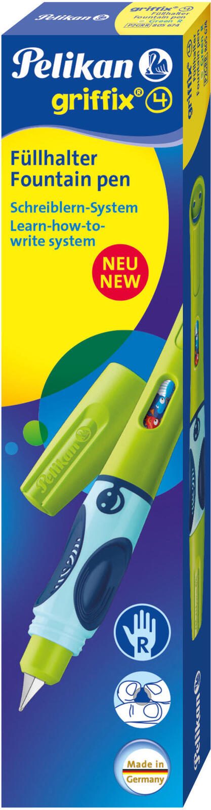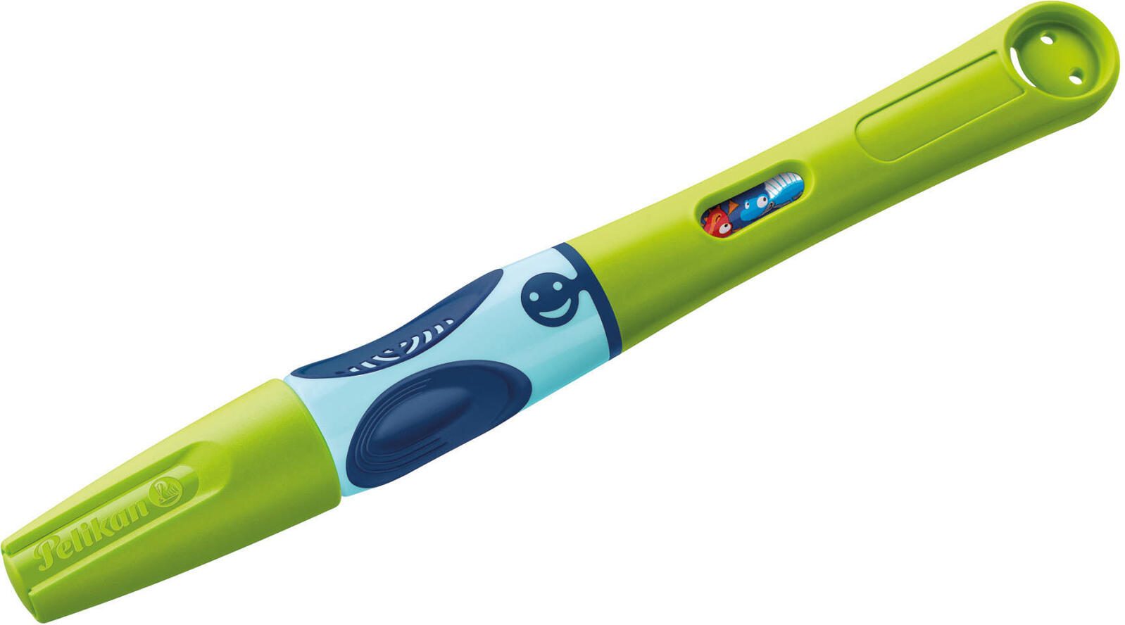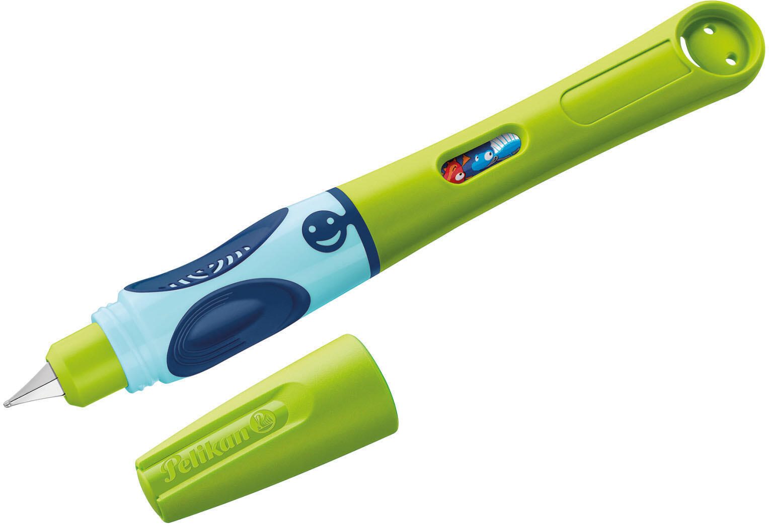 Der Pelikan Füller Rechtshänder in Grün ist ein Schulfüller, speziell entwickelt für Rechtshänder. Dieser Füller verfügt über ein Namensschild und ein großes Tintensichtfenster, um den Tintenstand leicht abzulesen. Das Gehäuse des Füllers ist in einem ansprechenden Grünton gehalten.