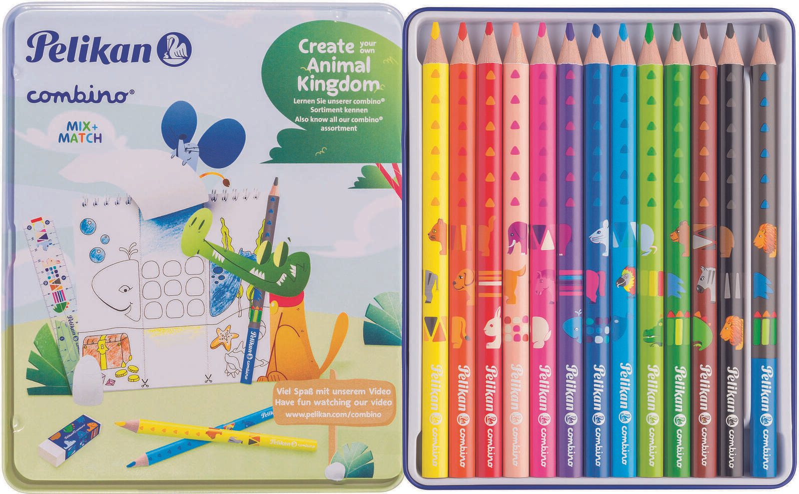 Die Pelikan Buntstifte Mehrfarbig sind die ideale Wahl für kreative Köpfe, die Wert auf Qualität und Vielseitigkeit legen. Mit ihrer dreikantigen Form liegen sie besonders gut in der Hand und ermöglichen ein ermüdungsfreies Zeichnen und Schreiben, egal ob du ein Anfänger oder ein erfahrener Künstler bist. Jedes Set enthält 13 verschiedene Stifte, die in einer breiten Palette von Farben erhältlich sind: gelb, orange, rot, beige, rosa, lila, dunkelblau, hellblau, dunkelgrün, hellgrün, braun, schwarz und grau. Diese Farbvielfalt eröffnet dir unzählige Möglichkeiten, deine Kreativität auszudrücken und deine Kunstwerke zum Leben zu erwecken. Die hohe Minenstabilität und Bruchfestigkeit der Stifte garantieren, dass du lange Freude an deinem Mal- und Zeichenspaß hast. Egal, ob du feine Linien zeichnen oder kräftige Farbflächen gestalten möchtest, die Pelikan Buntstifte bieten dir die nötige Präzision und Farbintensität. Die Jumbo-Ausführung sorgt zudem dafür, dass die Stifte angenehm zu halten sind und sich ideal für Kinderhände eignen, was sie zu einem perfekten Begleiter für den Kunstunterricht oder die Freizeit macht. Verpackt in einem robusten Metall-Etui, sind die Pelikan Buntstifte nicht nur praktisch, sondern auch stilvoll. Das Etui schützt die Stifte vor Beschädigungen und sorgt dafür, dass sie immer griffbereit sind, wenn die Kreativität dich überkommt. Mit diesen Buntstiften von Pelikan erhältst du nicht nur ein hochwertiges Produkt, sondern auch ein unverzichtbares Werkzeug für alle, die das Zeichnen und Malen lieben.Technische Daten