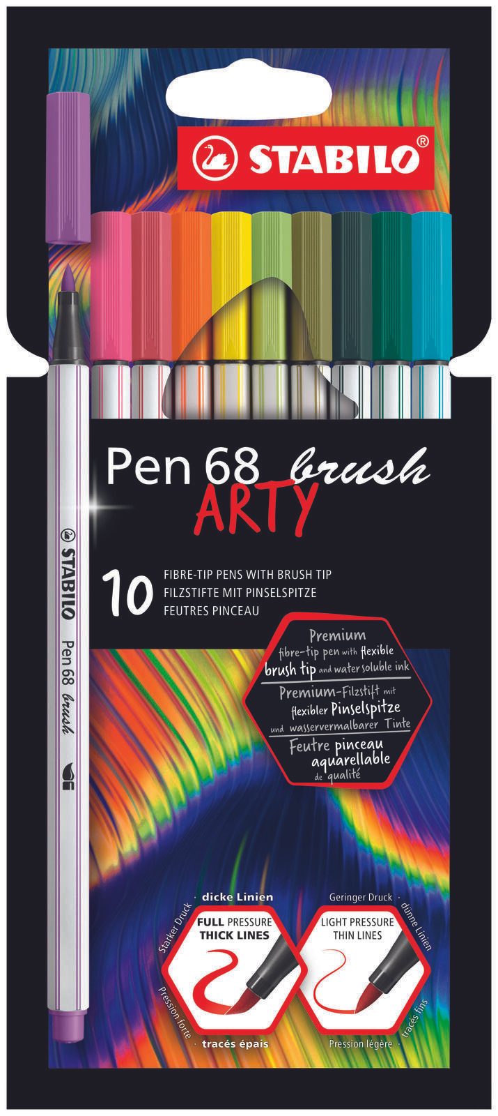 Die STABILO Filzstifte Mehrfarbig sind die ideale Wahl für kreative Köpfe, die Wert auf Qualität und Vielseitigkeit legen. Mit einer formstabilen und elastischen Pinselspitze ermöglichen diese Filzstifte präzise Strichführungen, egal ob du feine Linien oder breite Flächen gestalten möchtest. Die Pinselspitze sorgt dafür, dass du beim Zeichnen und Malen die volle Kontrolle behältst, während die Farben lebendig und ausdrucksstark auf deinem Papier erscheinen. Ein weiteres Highlight dieser Filzstifte ist ihre Wischfestigkeit. Damit kannst du sicher sein, dass deine Kunstwerke auch nach dem Trocknen nicht verwischen, was sie perfekt für den Einsatz in Schulen, bei Workshops oder einfach für den kreativen Spaß zu Hause macht. Die praktische Schutzklappe schützt die Spitzen vor dem Austrocknen, sodass du lange Freude an deinen STABILO Filzstiften hast. In einem Karton-Etui sind insgesamt 10 verschiedene Farben enthalten, die dir eine breite Palette an Möglichkeiten bieten, um deine Ideen zum Leben zu erwecken. Egal, ob du bunte Illustrationen, kreative Handlettering-Projekte oder einfach nur Notizen in lebendigen Farben gestalten möchtest, diese Filzstifte sind die perfekte Wahl. Der Sechskant-Griff sorgt zudem für eine angenehme Handhabung, die auch bei längeren Zeichen- oder Mal-Sessions nicht ermüdet. Die STABILO Filzstifte Mehrfarbig sind nicht nur ein unverzichtbares Werkzeug für Künstler und Bastler, sondern auch für jeden, der Spaß am kreativen Arbeiten hat. Mit ihrer hohen Farbbrillanz und der praktischen Anwendung sind sie eine wertvolle Ergänzung für dein kreatives Arsenal.Technische Daten