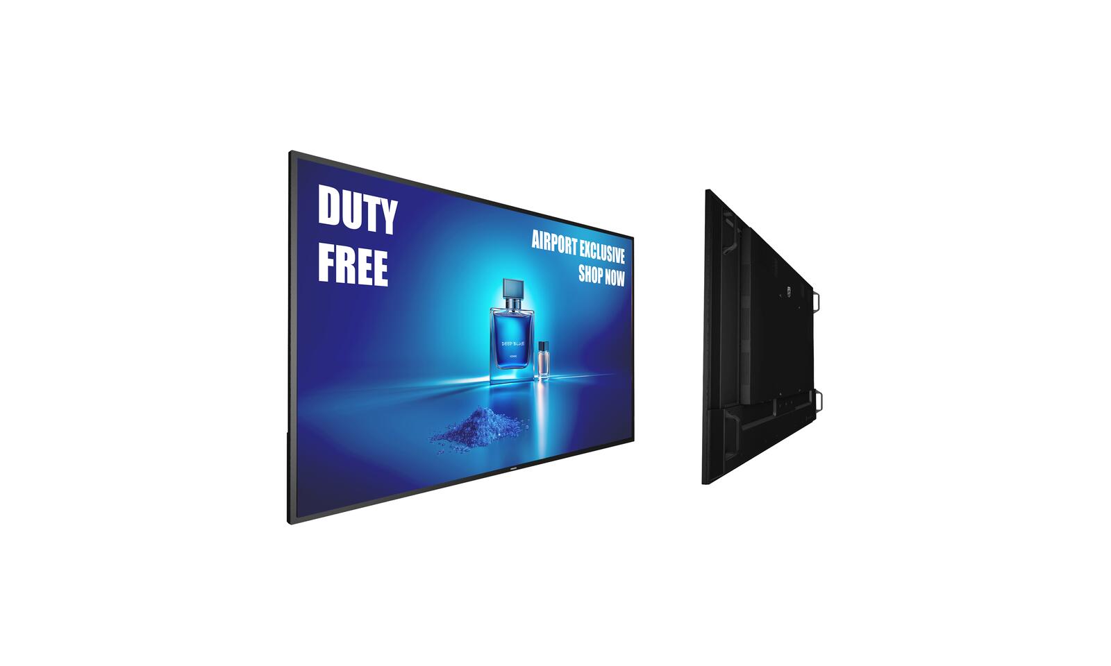 Kann im Quer- oder Hochformat montiert werden; verfügbar in den Größen 108 cm (43”), 126 cm (50”), 139 cm (55”) und 164 cm (65”) für vielfache Montagezwecke.