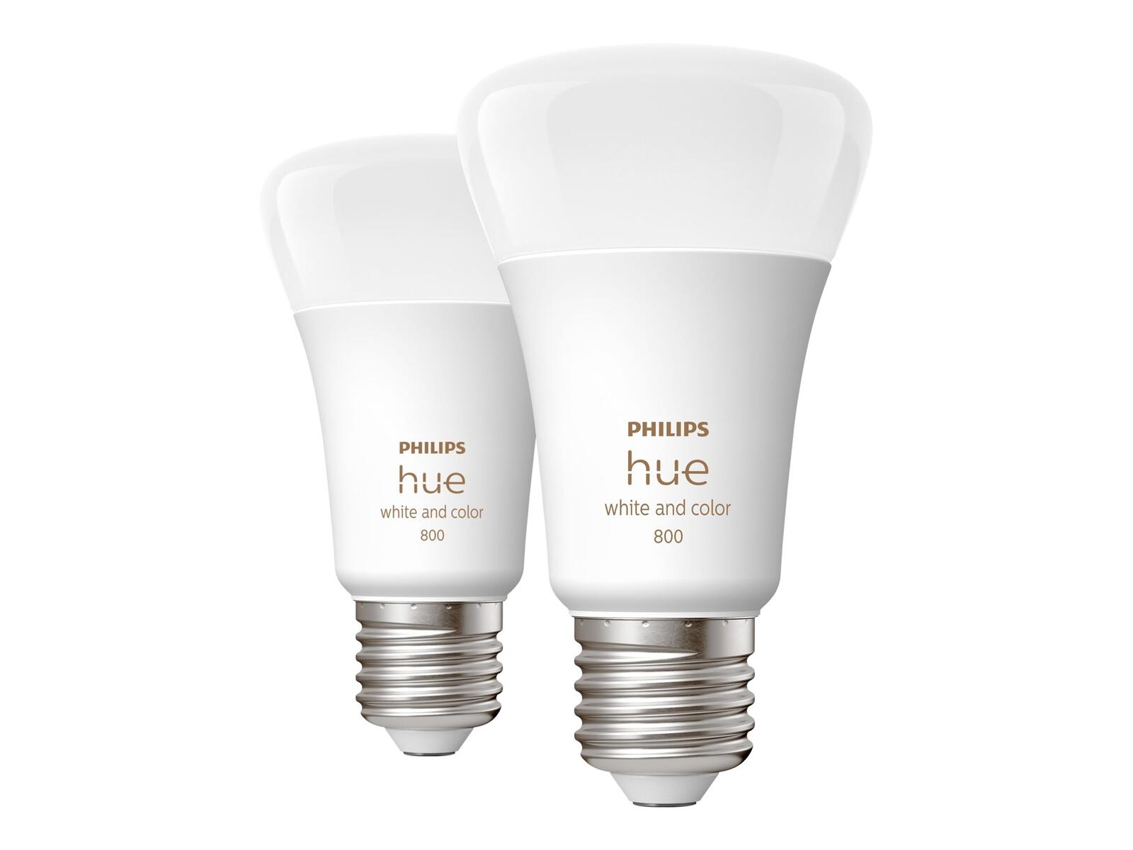 Philips Hue - LED-Lampe - Form: A60 - E27 - 6.5 W (Entsprechung 60 W) Klasse F - 16 Millionen Farben - 2000-6500 K - weiß (Packung mit 2)