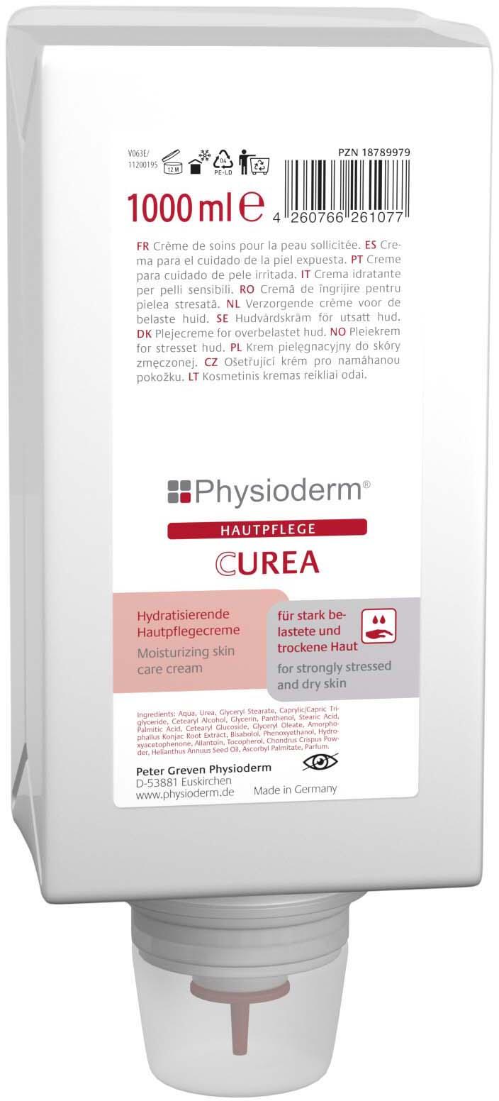 Die Hautschutzcreme wird in einer praktischen 1,0-Liter-Packung angeboten und gehört zur CUREA-Serie von Physioderm®. Sie ist ein hochwertiges Hautpflegepräparat, das sich besonders für die Pflege beanspruchter Hautbereiche eignet.