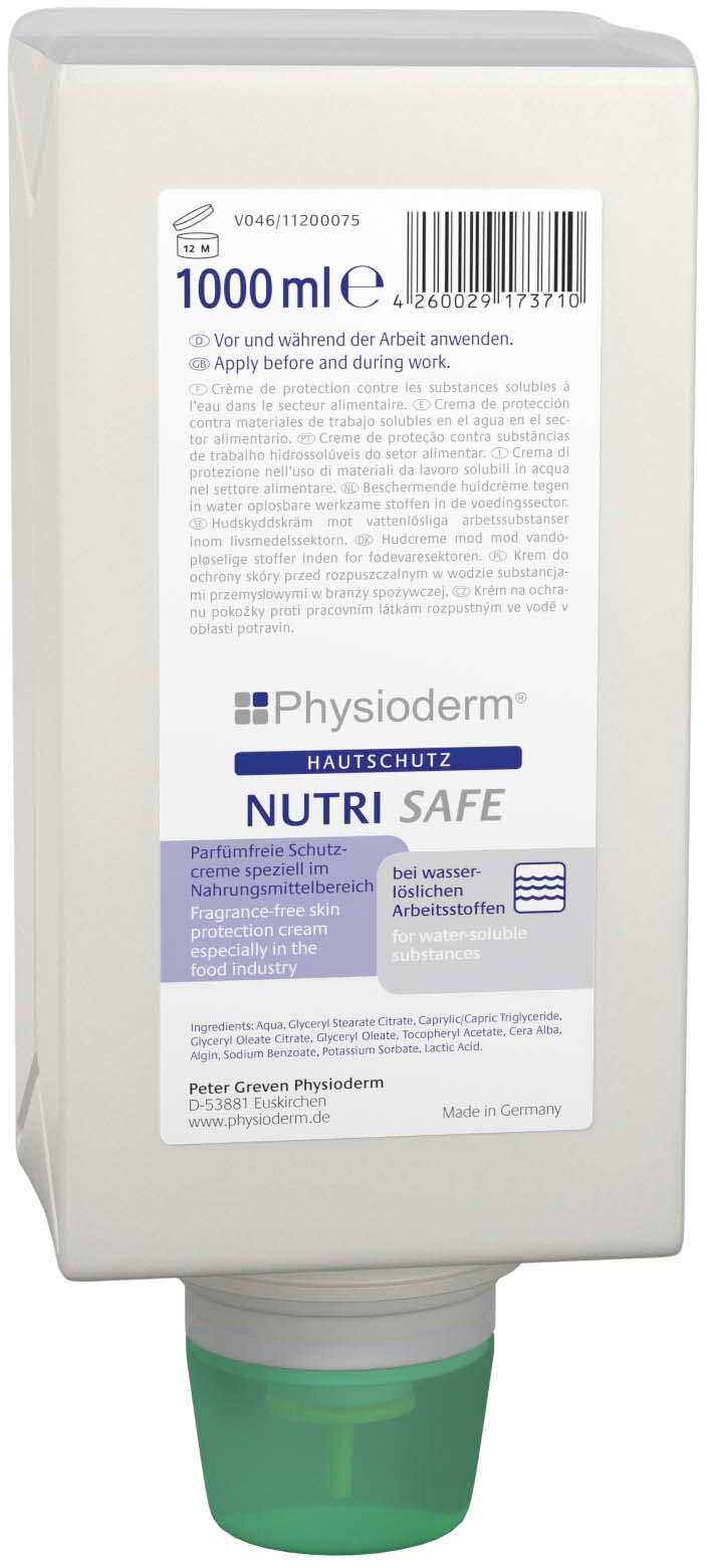 Die Physioderm® Hautschutzcreme NUTRI SAFE ist ein Hautpflegepräparat, das speziell für den Schutz der Haut bei der Arbeit mit wasserlöslichen Arbeitsstoffen entwickelt wurde. Die Creme ist für alle Hauttypen geeignet und unterstützt die Haut dabei, sich vor schädlichen Einflüssen zu schützen. Mit einem Inhalt von 1,0 Liter bietet sie eine ausreichende Menge für den regelmäßigen Gebrauch.