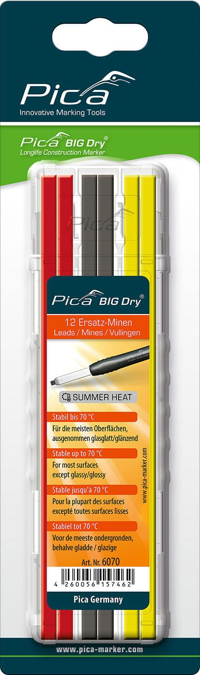 Pica Big Dry Sommer Ersatzminen für Tieflochmarker-Bleistift 2.0 mm 4x graphite, 4x gelb, 4x rot 1 Pack = 12 St.