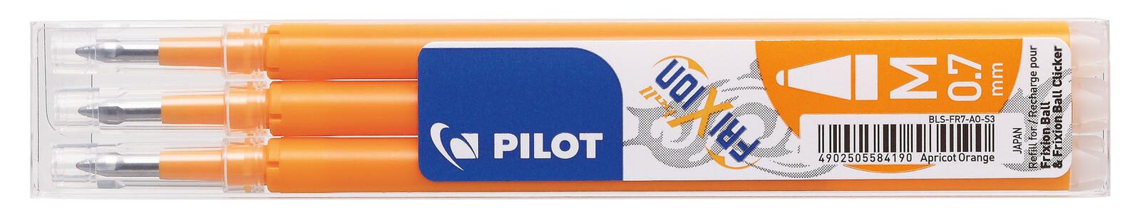 Die PILOT Tintenrollerminen Pilot FRIXION Refill Apricot in der Farbe Orange sind speziell für den PILOT FriXion Ball und den PILOT FriXion Ball Clicker geeignet. Mit einer Strichstärke von 0,4 mm und einer Detailfarbe in Apricot bieten sie ein einzigartiges Schreiberlebnis.