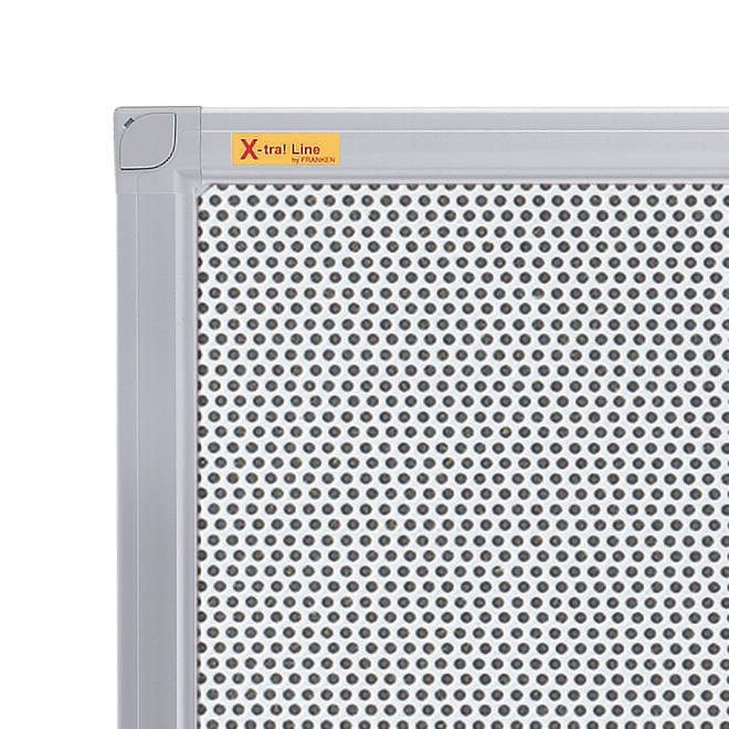 Die FRANKEN Magnetpinnwand in der Größe 90,0 x 60,0 cm präsentiert sich in einem eleganten Silberton und ist die perfekte Lösung für Ihre Kommunikationsbedürfnisse. Mit ihrer vielseitigen Montagemöglichkeit im Hoch- oder Querformat passt sie sich flexibel an jede Wandgestaltung an und bietet Ihnen eine großzügige Fläche, um Notizen, Erinnerungen oder wichtige Informationen ansprechend zu präsentieren. Die Tafeloberfläche besteht aus einem robusten Metallgitter, das sowohl magnethaftend als auch pinnbar ist. Dies ermöglicht Ihnen, Ihre Materialien sicher zu befestigen, ohne dass sie verrutschen oder abfallen. Dank der hochwertigen Verarbeitung aus Aluminium ist der Rahmen nicht nur stabil, sondern verleiht der Pinnwand auch einen modernen Look, der in jedes Büro oder Zuhause integriert werden kann. Die verdeckte Wandmontage sorgt für ein sauberes und aufgeräumtes Erscheinungsbild, sodass die Magnetpinnwand elegant an der Wand hängt, ohne dass sichtbare Halterungen stören. Die FRANKEN Magnetpinnwand ist somit nicht nur funktional, sondern auch ein stilvolles Accessoire, das Ihre Räume aufwertet. Ob im Büro für die Organisation von Projekten, in der Schule für den Unterricht oder im privaten Bereich für persönliche Notizen – diese Pinnwand ist vielseitig einsetzbar und unterstützt Sie dabei, Ihre Ideen und Informationen übersichtlich zu präsentieren. Die Kombination aus Funktionalität und ansprechendem Design macht die FRANKEN Magnetpinnwand zu einem unverzichtbaren Hilfsmittel in Ihrem Alltag.Technische Daten
