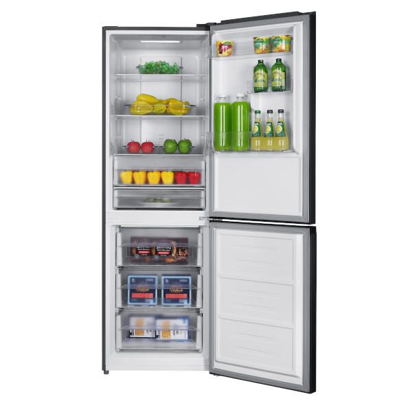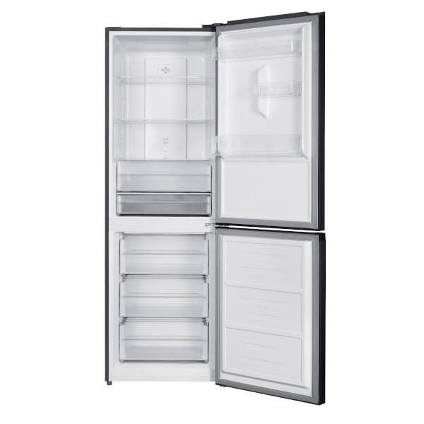 Die PKM Kühl-Gefrierkombi KG323CNFDDG überzeugt mit einem großzügigen Gesamtvolumen von 323 Litern, das sich auf 219 Liter im Kühlfach und 104 Liter im Gefrierfach verteilt. Mit ihrem modernen dunkelgrauen Design fügt sie sich elegant in jede Küche ein und bietet zugleich eine praktische und flexible Aufbewahrungslösung für Ihre Lebensmittel.