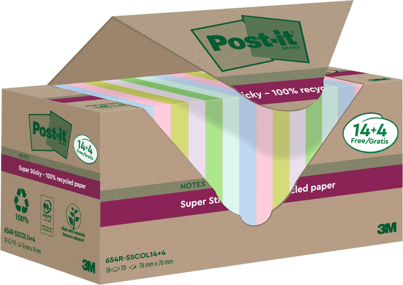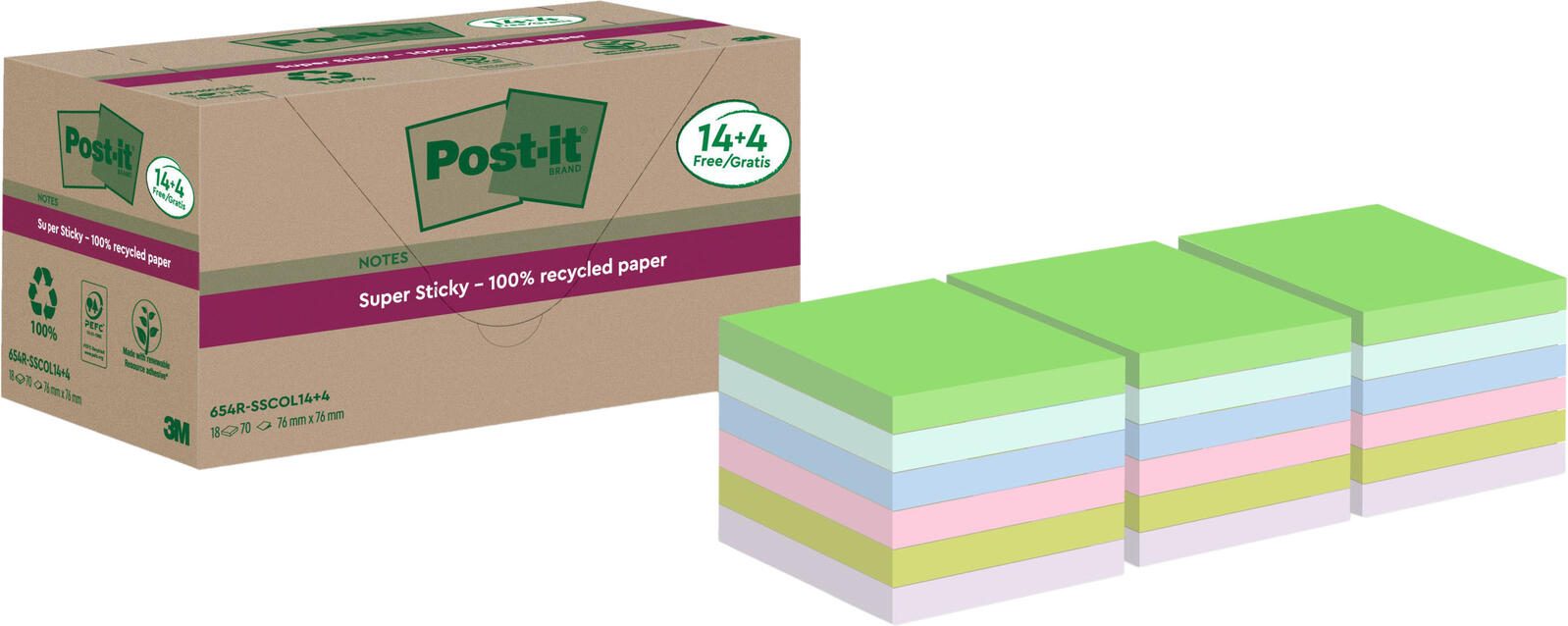 Die Post-it® Haftnotizen in der praktischen Größe von 7,6 x 7,6 cm sind die idealen Begleiter für deinen Alltag, ob im Büro, zu Hause oder in der Schule. Diese farbsortierten Haftnotizen bieten dir die Möglichkeit, wichtige Informationen, Erinnerungen oder kreative Ideen schnell und einfach festzuhalten. Mit 70 Blatt pro Block hast du ausreichend Platz, um all deine Gedanken zu notieren und sie an den passenden Stellen sichtbar zu machen. Die Haftnotizen bestehen aus hochwertigem Recycling-Papier, was nicht nur umweltfreundlich ist, sondern auch dafür sorgt, dass du beim Schreiben ein angenehmes Gefühl hast. Die selbstklebende Rückseite ermöglicht es dir, die Notizen mühelos auf verschiedenen Oberflächen anzubringen und bei Bedarf auch wieder zu entfernen, ohne Rückstände zu hinterlassen. So kannst du deine Notizen flexibel anpassen und umorganisieren, ganz nach deinen Bedürfnissen. Das praktische Blockformat macht die Handhabung besonders einfach. Du kannst die Notizen schnell abreißen und sie überallhin mitnehmen. Egal, ob du sie zur Organisation von Aufgaben, zum Teilen von Informationen oder einfach nur zum Festhalten von Ideen verwendest, die Post-it® Haftnotizen sind vielseitig einsetzbar und unterstützen dich dabei, den Überblick zu behalten. Ein Pack enthält insgesamt 18 Blöcke, sodass du immer genügend Vorrat hast, um deine Gedanken festzuhalten. Die bunten Farben bringen zudem einen Hauch von Freude in deinen Arbeitsalltag und helfen dir, wichtige Notizen auf einen Blick zu erkennen. Mit den Post-it® Haftnotizen 7,6 x 7,6 cm bist du bestens ausgestattet, um kreativ zu sein und deine Organisation zu optimieren.Technische Daten