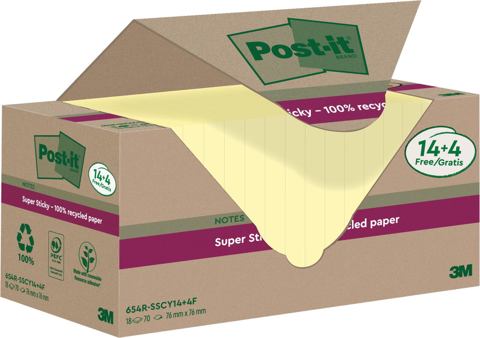 Die Post-it® Haftnotizen in der praktischen Größe von 7,6 x 7,6 cm sind der ideale Begleiter für deine täglichen Notizen und Erinnerungen. Diese leuchtend gelben Haftnotizen bestehen aus hochwertigem Recycling-Papier, welches umweltfreundlich und nachhaltig ist. Mit einem Block, der 70 Blätter umfasst, hast du ausreichend Platz, um Gedanken festzuhalten, wichtige Informationen zu notieren oder kreative Ideen festzuhalten. Die selbstklebende Rückseite sorgt dafür, dass die Notizen sicher an verschiedenen Oberflächen haften, ohne Rückstände zu hinterlassen. Ob im Büro, zu Hause oder in der Schule, die Post-it® Haftnotizen sind vielseitig einsetzbar und ermöglichen es dir, deine Gedanken schnell und unkompliziert zu organisieren. Die auffällige gelbe Farbe sorgt dafür, dass deine Notizen sofort ins Auge fallen und du keine wichtigen Informationen mehr vergisst. Mit 18 Blöcken pro Packung bist du bestens ausgestattet, um deine Projekte zu planen oder deine To-Do-Listen zu erstellen. Die handliche Größe macht es einfach, die Notizen überallhin mitzunehmen, sodass du jederzeit und überall kreativ sein kannst. Die Post-it® Haftnotizen sind nicht nur funktional, sondern auch ein stylisches Büroaccessoire, das deinem Arbeitsplatz Farbe verleiht. Vertraue auf die Qualität von Post-it® und erlebe, wie diese Haftnotizen dir helfen, deine Gedanken zu strukturieren und den Überblick zu behalten. Die Kombination aus praktischer Handhabung und umweltfreundlichem Material macht diese Haftnotizen zu einer ausgezeichneten Wahl für alle, die Wert auf Nachhaltigkeit und Effizienz legen.Technische Daten