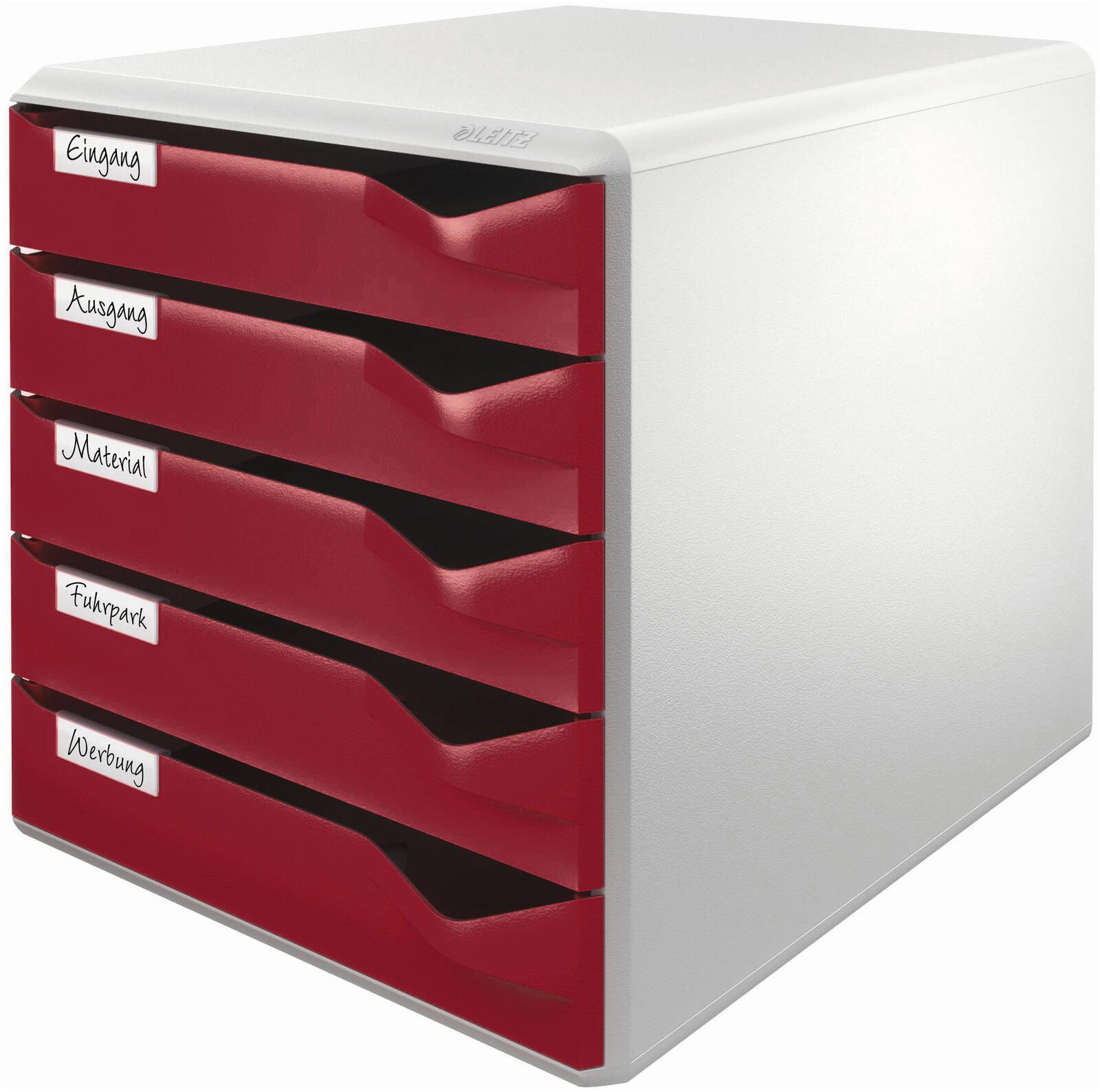 Die LEITZ Schubladenbox 52800028 ist die ideale Lösung für die geordnete Aufbewahrung von Dokumenten im DIN A4 Format. Mit den praktischen Maßen von 28,5 x 35,5 x 29,0 cm passt sie perfekt in jedes Büro oder Home-Office und sorgt dafür, dass deine Unterlagen stets griffbereit sind. Die Schubladenbox bietet fünf geschlossene Schubladen in einem eleganten Bordeaux-Farbton, die nicht nur funktional sind, sondern auch optisch einen ansprechenden Akzent setzen. Hergestellt aus robustem Polystyrol, zeichnet sich die Schubladenbox durch ihre Langlebigkeit und Stabilität aus. Das Material ist nicht nur leicht zu reinigen, sondern auch umweltfreundlich. Die stapelbare Konstruktion ermöglicht es dir, mehrere Boxen übereinander zu platzieren, wodurch du wertvollen Platz auf deinem Schreibtisch oder im Regal sparen kannst. Die geschlossenen Schubladen schützen deine Dokumente vor Staub und anderen Umwelteinflüssen, während der Lichtgrau-Farbton des Gehäuses einen modernen und zeitlosen Look bietet. Mit der LEITZ Schubladenbox 52800028 kannst du deine Unterlagen effizient organisieren und gleichzeitig für eine ansprechende Büroatmosphäre sorgen. Diese Box ist nicht nur praktisch, sondern auch ein stilvolles Accessoire, das dein Arbeitsumfeld aufwertet. Egal, ob für wichtige Verträge, Berichte oder persönliche Unterlagen, die LEITZ Schubladenbox ist die perfekte Wahl, um Ordnung zu schaffen und den Überblick zu behalten. Investiere in eine durchdachte Aufbewahrungslösung und erlebe, wie einfach es sein kann, deine Dokumente zu organisieren.Technische Daten