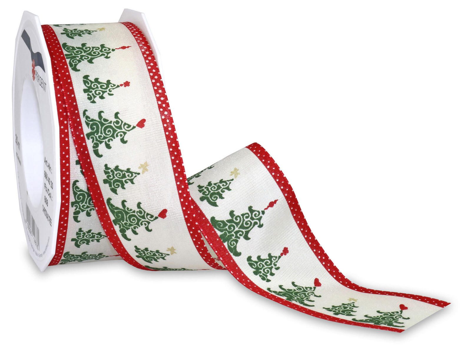 PRÄSENT Geschenkbänder 40 mm x 20 m weiß/grün/rot
