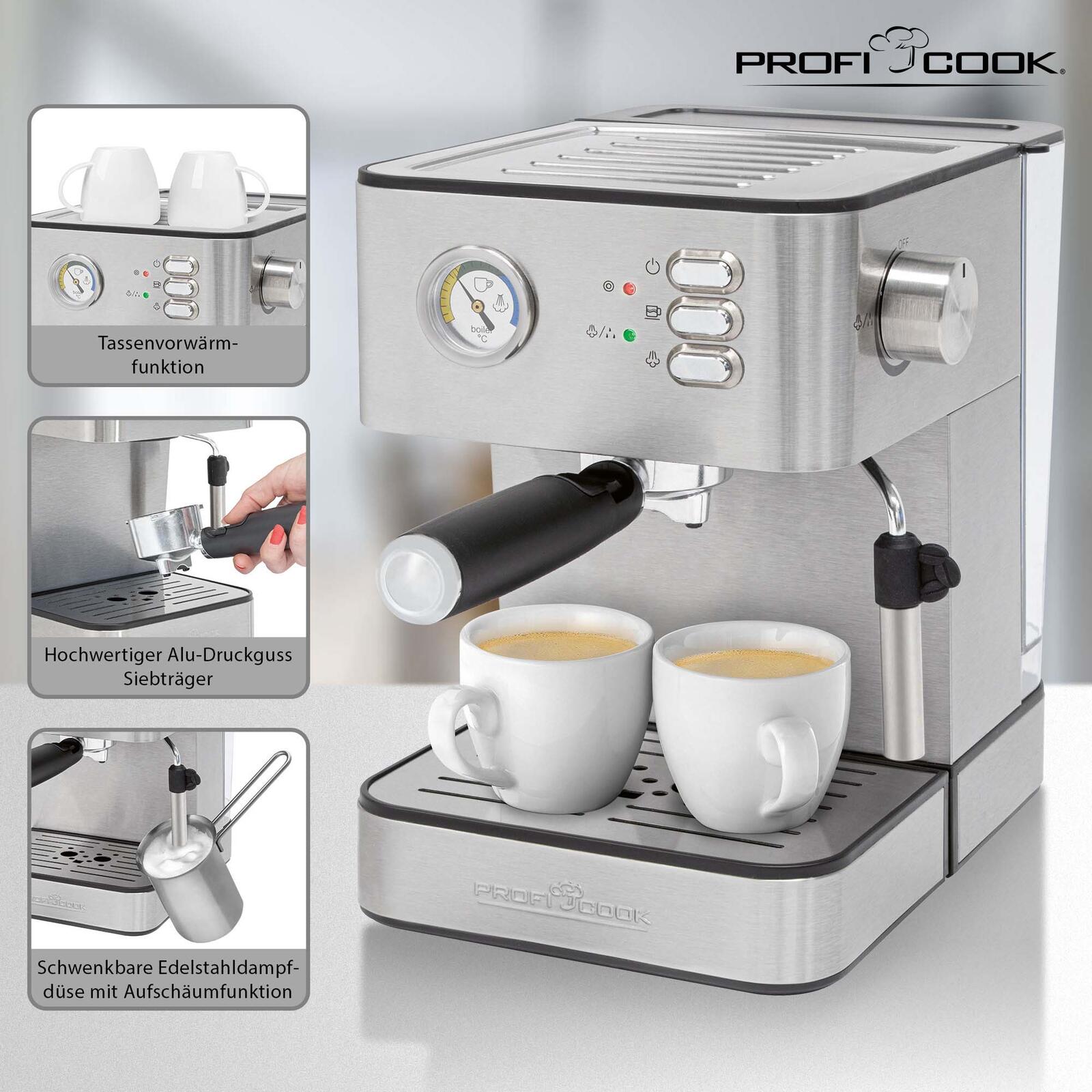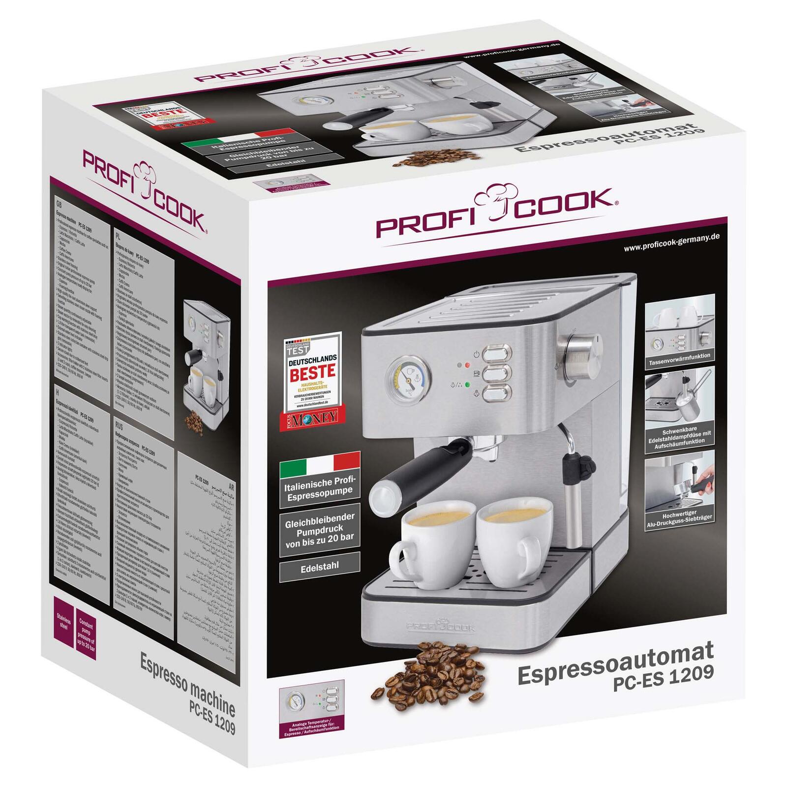 Die ProfiCook Espressom PC-ES 1209 ist eine hochwertige Espressomaschine, die mit ihrem edlen Design in Silber und der Verwendung von Edelstahl nicht nur optisch überzeugt, sondern auch mit erstklassiger Leistung.