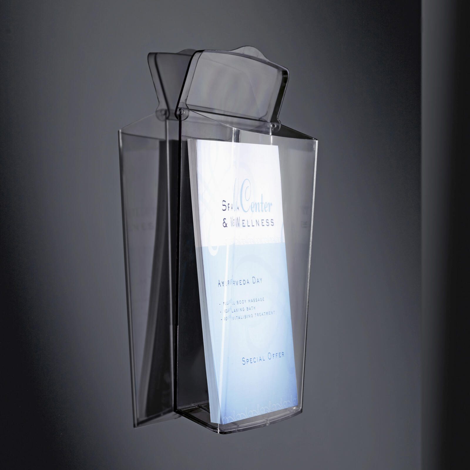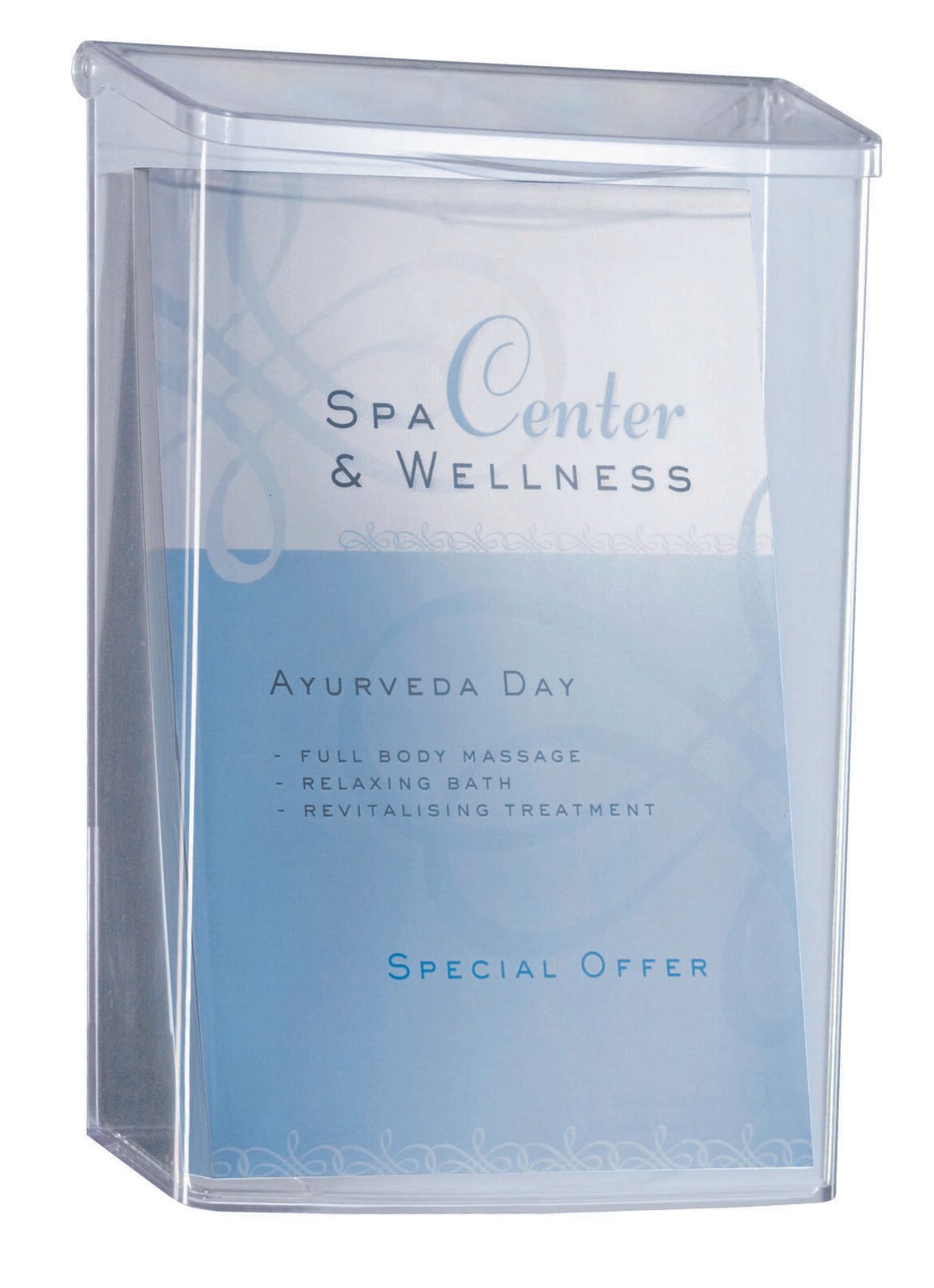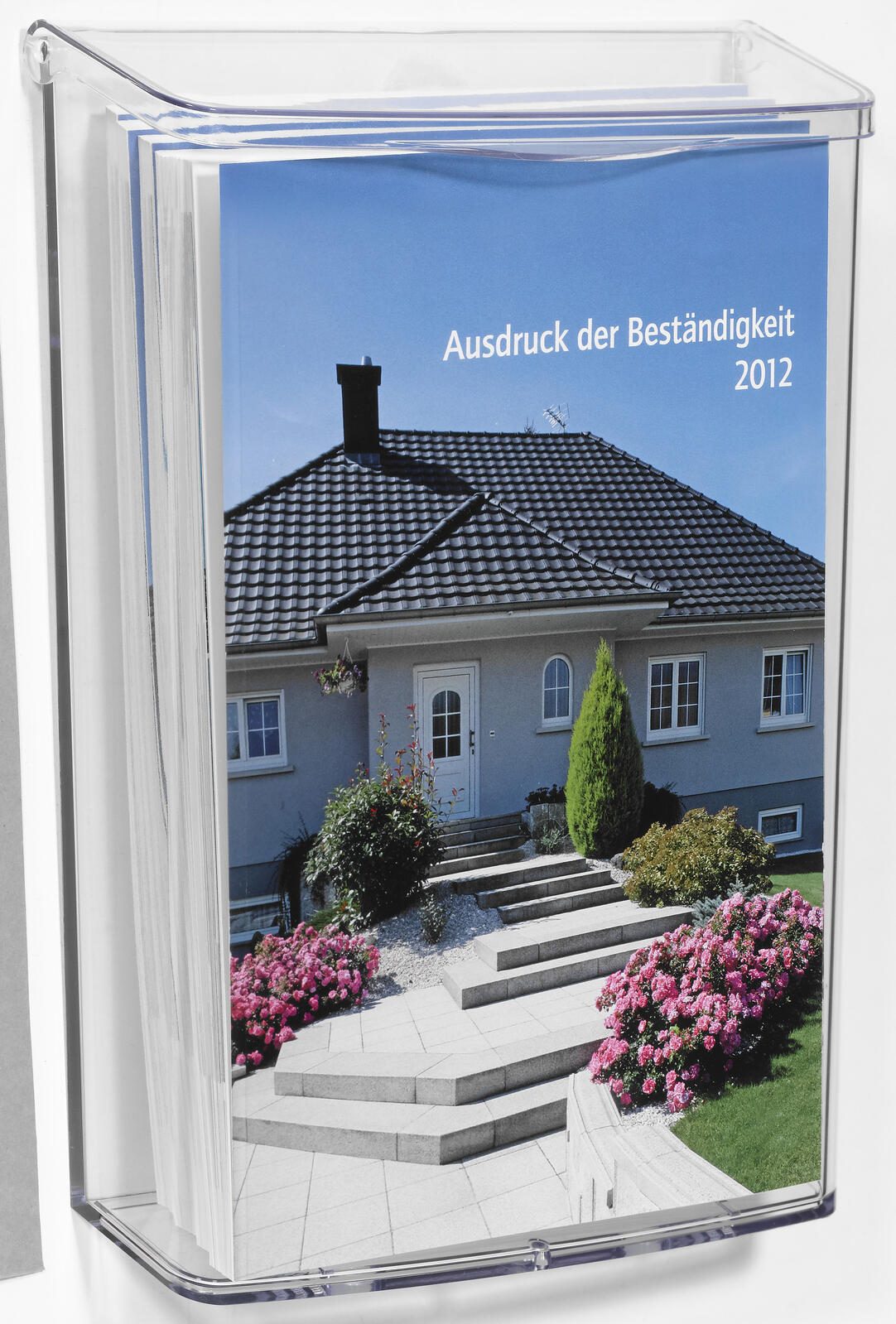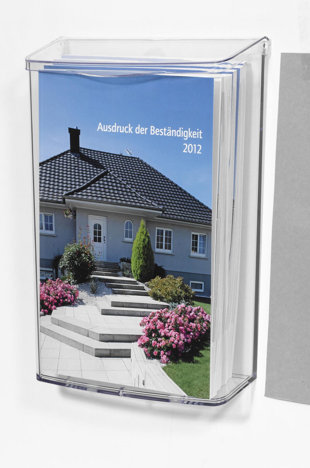 Dank seines hochwertigen Acrylmaterials ist der Prospekthalter nicht nur robust, sondern auch ästhetisch ansprechend. Die Transparenz des Materials ermöglicht eine klare Sicht auf den Inhalt, was die Aufmerksamkeit auf deine Prospekte lenkt.