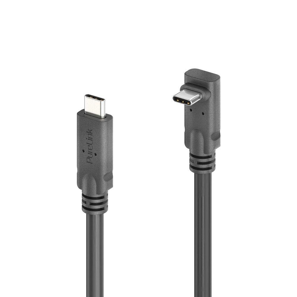 PureLink USB-C auf USB-C 90° Auf/Ab-Kabel - USB4 Gen 2x2, 5A, EPR 240W, 20G, DP Alt-Mode - PureInstall MicroX4 - schwarz - 1,50m