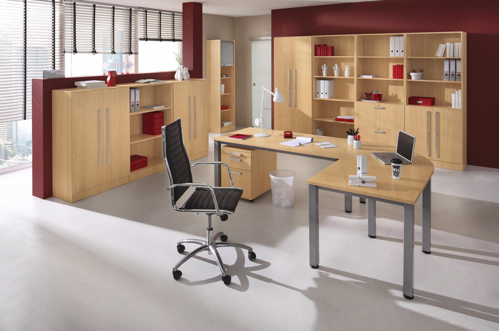 • QS12 höhenverstellbarer Schreibtisch buche rechteckig