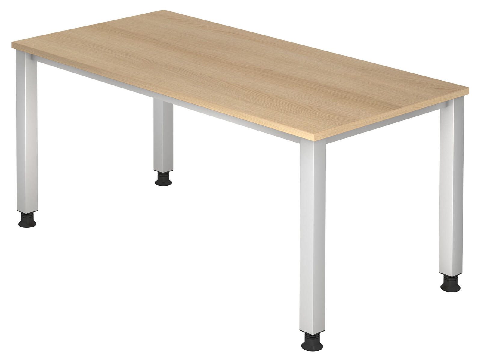 Der HAMMERBACHER höhenverstellbare Schreibtisch VQS16/E/S in edler Eichenoptik vereint Funktionalität und modernes Design. Die Tischplatte aus robuster Spanplatte bietet eine großzügige Arbeitsfläche von 160 cm x 80 cm, die Ihnen ausreichend Platz für Ihre täglichen Aufgaben und kreative Projekte bietet. Mit einer Höhe von 68,5 cm lässt sich der Schreibtisch individuell an Ihre Bedürfnisse anpassen, was eine ergonomische Arbeitsweise fördert und Rückenschmerzen vorbeugt. Das stabile 4-Fuß-Gestell aus hochwertigem Stahl sorgt für eine sichere und zuverlässige Standfestigkeit. In der eleganten Farbe Silber fügt sich der Schreibtisch harmonisch in jedes Büro- oder Arbeitsumfeld ein und setzt gleichzeitig einen modernen Akzent. Die Kombination aus der natürlichen Eichenfarbe der Tischplatte und dem silbernen Gestell schafft eine ansprechende Ästhetik, die sowohl in privaten als auch in geschäftlichen Räumen überzeugt. Ein weiterer Vorteil des HAMMERBACHER Schreibtisches ist die einfache Handhabung der Höhenverstellung, die es Ihnen ermöglicht, im Stehen oder Sitzen zu arbeiten. Dies fördert nicht nur die Gesundheit, sondern steigert auch die Produktivität, indem Sie Ihre Arbeitsposition jederzeit anpassen können. Mit seiner klaren Linienführung und dem zeitlosen Design ist der QS16 nicht nur ein funktionales Möbelstück, sondern auch ein stilvolles Element Ihrer Einrichtung. Der Schreibtisch kommt ohne zusätzliche Fächer oder Schübe aus, was ihn besonders leicht und flexibel in der Nutzung macht. Genießen Sie die Vorteile eines höhenverstellbaren Schreibtisches und gestalten Sie Ihre Arbeitsumgebung nach Ihren Wünschen.Technische Daten