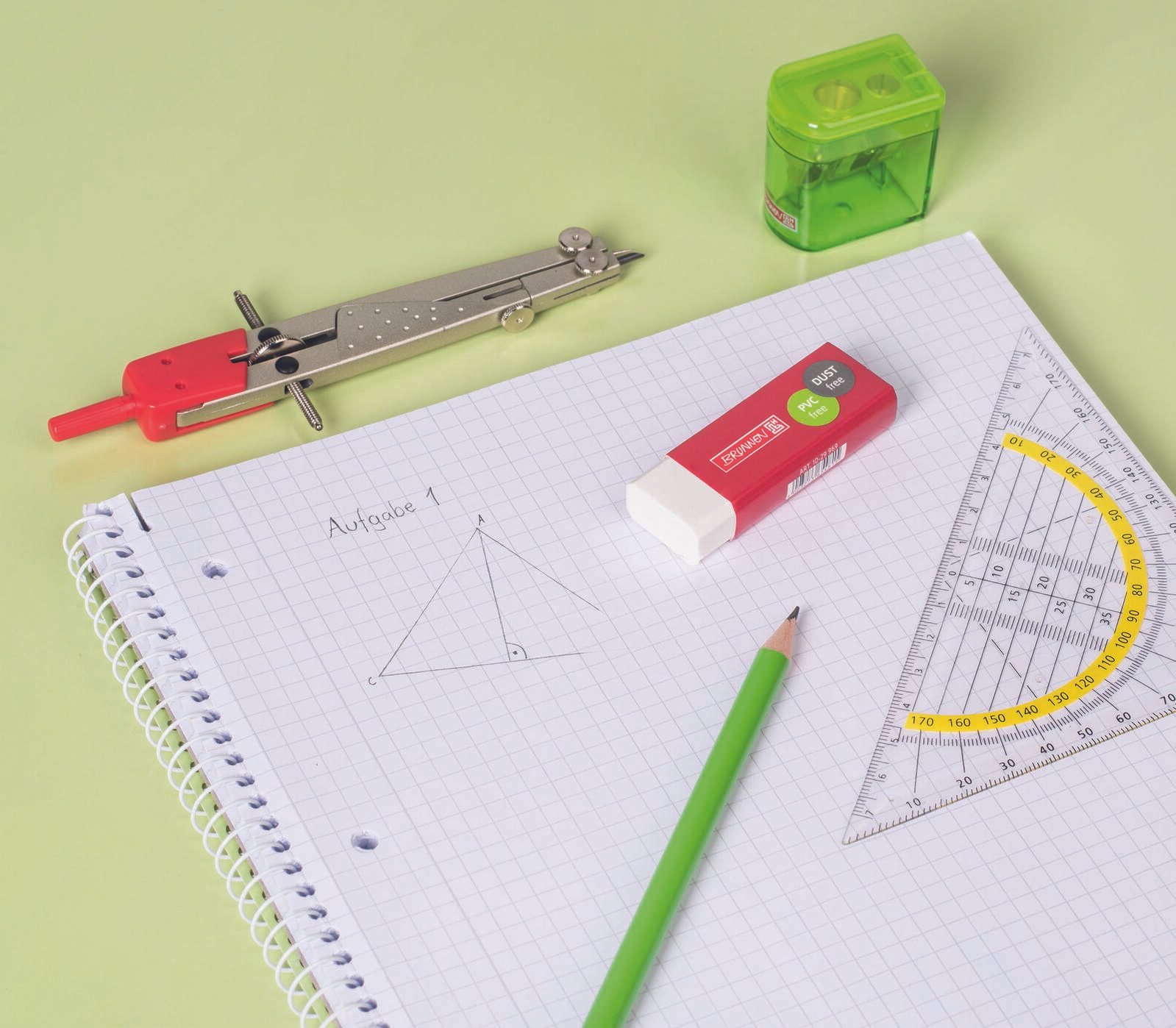Dank seines Kunststoffmaterials ist er robust und langlebig. Er eignet sich perfekt für Bleistifte und Buntstifte und sorgt für sauberes Radieren ohne lästige Rückstände.