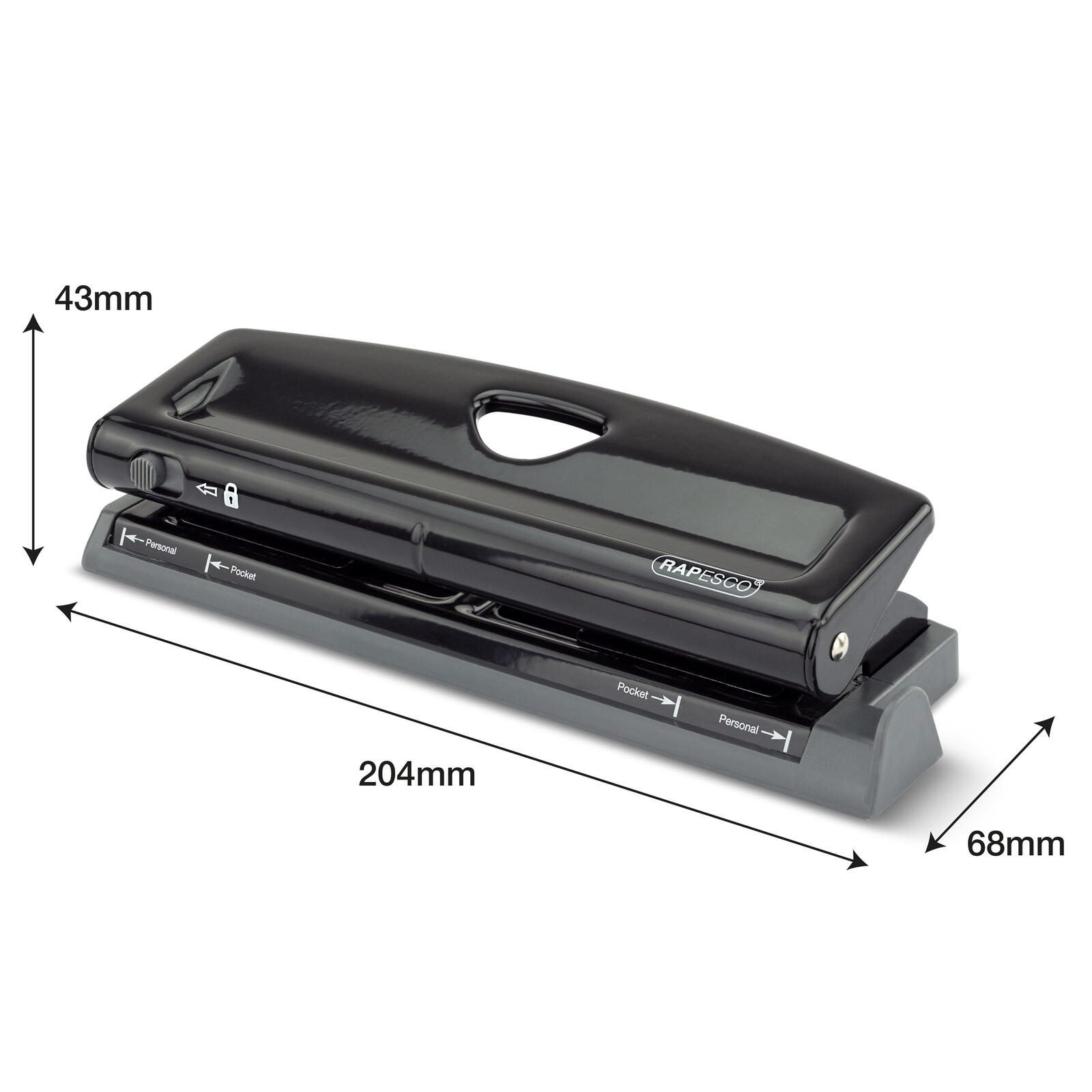 Der Rapesco 6-Fach-Locher sz 1 St. in Schwarz ist ein Locher der Extraklasse und ein unverzichtbares Utensil für deinen Schreibtisch. Mit seinem Terminplaner-Locher-Modell setzt er Maßstäbe in puncto Funktionalität und Design.