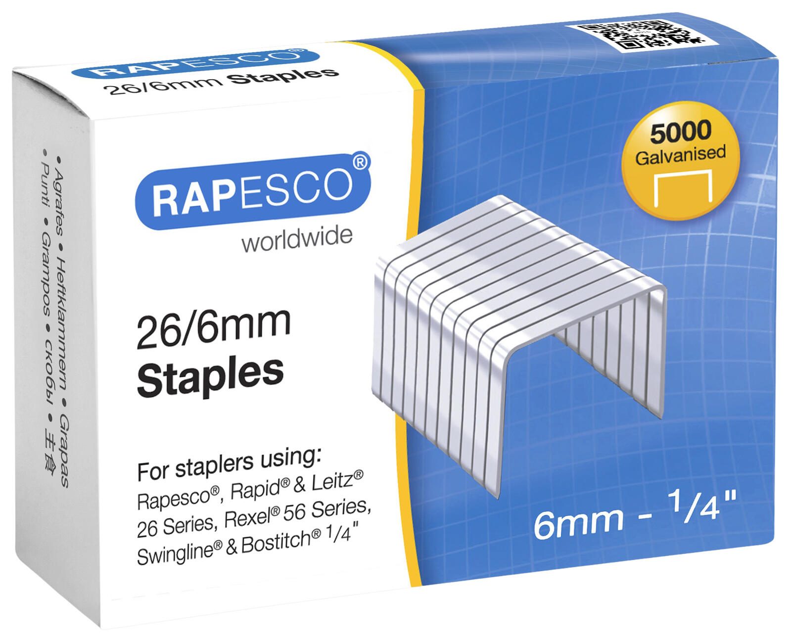 Die RAPESCO® Heftklammern 26/6 sind speziell für den Einsatz in Büroheftgeräten konzipiert. Mit einer Packungsgröße von 5.000 Stück bieten sie eine große Menge an Heftklammern, die sich für den täglichen Gebrauch im Büro oder zu Hause eignen. Die Klammern sind aus robustem Stahl gefertigt und verfügen über eine silberne Farbe, die für eine klassische Optik sorgt.
