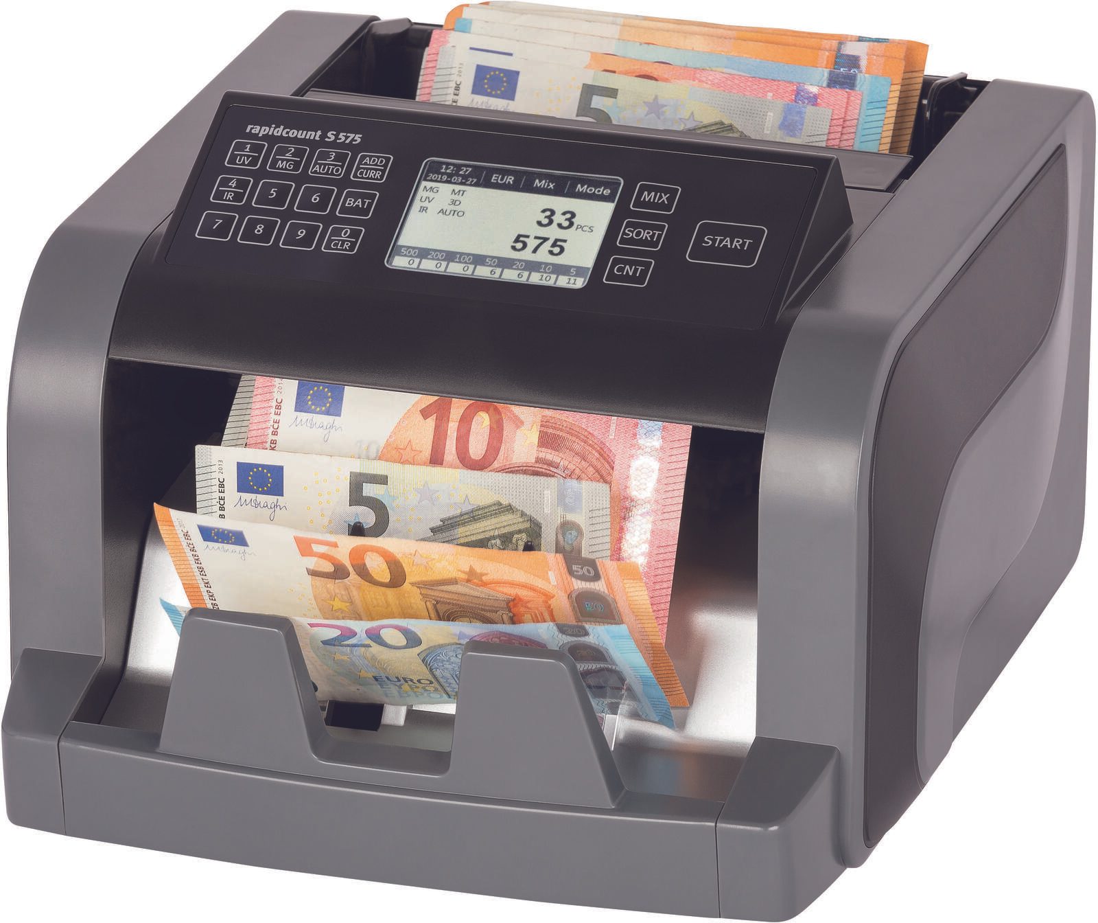 Der ratiotec Banknotenzähler S 575 ist die ideale Lösung für Unternehmen, die einen zuverlässigen und effizienten Banknotenzähler benötigen. Mit einer beeindruckenden Kapazität von bis zu 400.000 Banknoten pro Jahr bietet dieses Gerät eine herausragende Leistung, die den Anforderungen eines geschäftigen Umfelds gerecht wird. In einem eleganten grauen Design vereint der Banknotenzähler Funktionalität und Ästhetik. Die Einzugskapazität von bis zu 100 Banknoten ermöglicht es dir, große Mengen an Bargeld in kürzester Zeit zu verarbeiten. Mit einer Geschwindigkeit von 1.200 Banknoten pro Minute wird das Zählen von Geldscheinen zum Kinderspiel und spart wertvolle Zeit bei der täglichen Arbeit. Ein besonders herausragendes Merkmal des ratiotec S 575 ist die umfassende Echtheitsprüfung. Das Gerät prüft die Banknoten nach verschiedenen Sicherheitsmerkmalen, darunter UV, MG, IR, MT und CIS, um sicherzustellen, dass du immer mit echtem Geld arbeitest. Dies erhöht nicht nur die Sicherheit, sondern auch das Vertrauen in deine Bargeldtransaktionen. Der Betrieb erfolgt über das Stromnetz, was eine kontinuierliche Nutzung ohne Unterbrechungen ermöglicht. Die Druckfunktion sorgt dafür, dass du jederzeit eine Dokumentation der gezählten Banknoten zur Hand hast, was die Transparenz und Nachvollziehbarkeit deiner Finanztransaktionen erhöht. Mit dem ratiotec Banknotenzähler S 575 erhältst du ein leistungsstarkes und sicheres Werkzeug, das dir hilft, die Effizienz deiner Bargeldverarbeitung zu steigern und gleichzeitig die Sicherheit deiner Transaktionen zu gewährleisten. Ideal für Einzelhändler, Banken und andere Unternehmen, die regelmäßig mit Bargeld arbeiten.Technische Daten