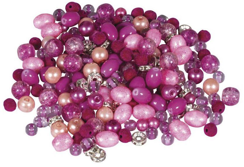 Rayher Perlen-Set Glasperlenmix mit Effektperlen pink