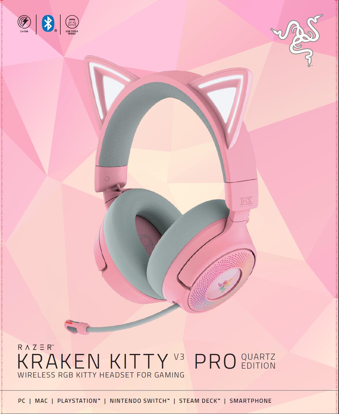 Razer Kraken Kitty V3 Pro kabelloses RGB-Kitty-Headset für Gaming, quartz