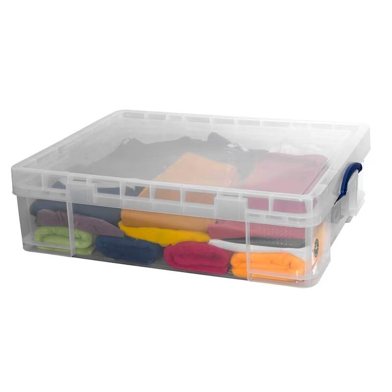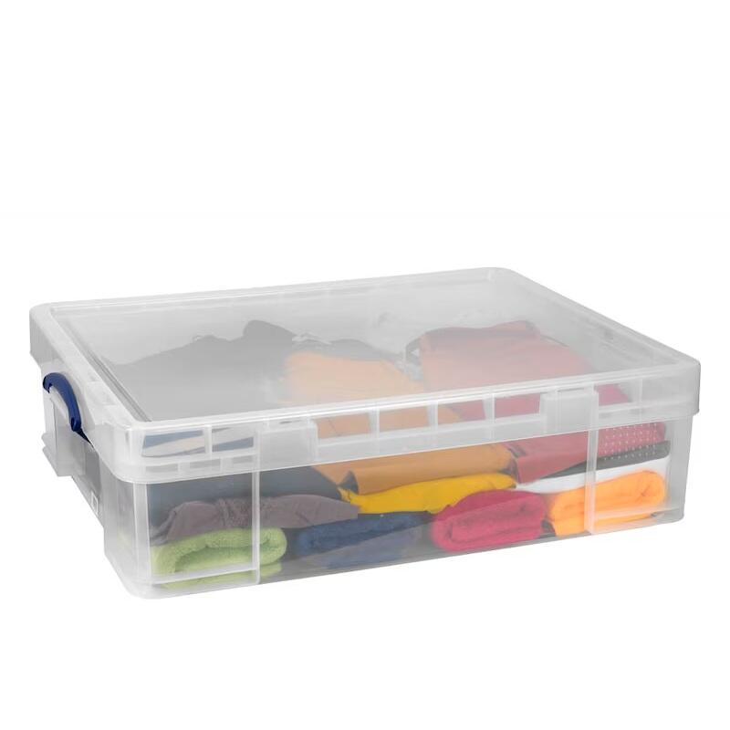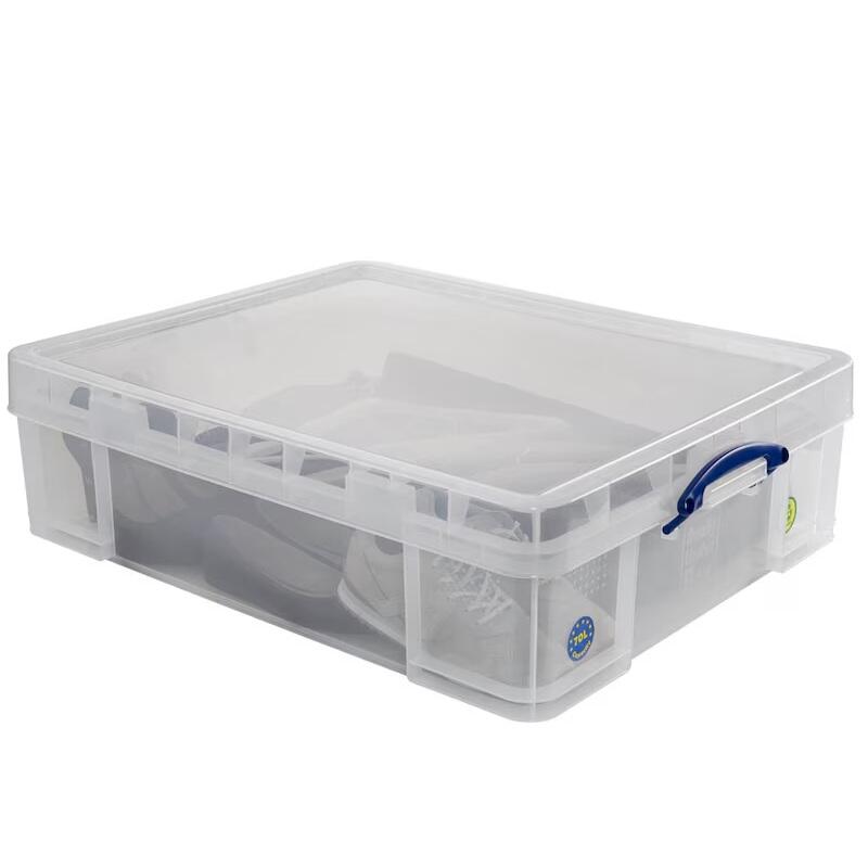 Die Really Useful Box Aufbewahrungsbox mit einem großzügigen Fassungsvermögen von 70,0 Litern ist die ideale Lösung für deine Aufbewahrungsbedürfnisse. Mit den Außenmaßen von 81,0 x 62,0 x 22,5 cm bietet sie ausreichend Platz für Kleidung, Spielzeug oder andere wichtige Gegenstände, die du ordentlich verstauen möchtest. Das transparente Design ermöglicht es dir, den Inhalt auf einen Blick zu erkennen, sodass du immer genau weißt, wo sich deine Sachen befinden. Hergestellt aus hochwertigem, recycelbarem Polypropylen, vereint diese Aufbewahrungsbox Funktionalität und Nachhaltigkeit. Das Material ist nicht nur robust, sondern auch umweltfreundlich, was sie zu einer verantwortungsbewussten Wahl für dein Zuhause macht. Der praktische Deckel sorgt dafür, dass der Inhalt vor Staub und Schmutz geschützt ist, während die stapelbare Bauweise dir erlaubt, mehrere Boxen platzsparend übereinander zu stapeln. So kannst du deinen Raum optimal nutzen, ohne auf Ordnung verzichten zu müssen. Ob im Schlafzimmer, im Kinderzimmer oder im Abstellraum, die Really Useful Box passt sich deinem Lebensstil an und hilft dir, einen klaren Kopf zu bewahren. Sie ist nicht lebensmittelecht, eignet sich jedoch hervorragend zur Aufbewahrung von Kleidung und anderen nicht lebensmittelbezogenen Artikeln. Durch das durchsichtige Material kannst du jederzeit einen schnellen Überblick über deine Dinge behalten. Entscheide dich für die Really Useful Box Aufbewahrungsbox und genieße die Vorteile einer durchdachten und praktischen Aufbewahrungslösung, die sowohl stilvoll als auch funktional ist.Technische Daten