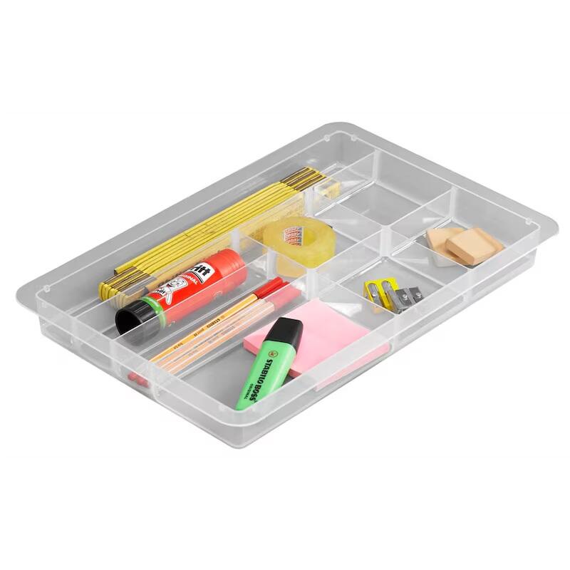 Die Really Useful Box Aufbewahrungsbox mit einem Fassungsvermögen von 4,0 Litern ist die ideale Lösung für die ordentliche Aufbewahrung von Kleinteilen. Mit Außenmaßen von 39,5 x 25,5 x 8,8 cm bietet sie ausreichend Platz, um alles Wichtige sicher und übersichtlich zu verstauen. Das transparente Design ermöglicht es dir, den Inhalt auf einen Blick zu erkennen, ohne die Box öffnen zu müssen. Hergestellt aus robustem Polypropylen, zeichnet sich diese Aufbewahrungsbox durch ihre Langlebigkeit und Stabilität aus. Der praktische Deckel schützt den Inhalt vor Staub und Schmutz, während die stapelbare Bauweise eine platzsparende Aufbewahrung ermöglicht. Du kannst mehrere Boxen übereinander stapeln, um deinen Stauraum optimal zu nutzen und gleichzeitig einen aufgeräumten Look zu schaffen. Ob für Bastelmaterialien, Bürobedarf oder andere Kleinteile, die Really Useful Box ist vielseitig einsetzbar und passt sich deinen individuellen Bedürfnissen an. Trotz ihres kompakten Formats bietet sie genügend Platz, um deine Sachen ordentlich zu organisieren. Die Box ist nicht lebensmittelecht, was sie besonders für die Aufbewahrung von nicht essbaren Gegenständen geeignet macht. Mit dieser praktischen Aufbewahrungslösung schaffst du Ordnung in deinem Zuhause oder Büro und sorgst dafür, dass alles seinen Platz hat. Die Really Useful Box ist ein unverzichtbares Accessoire für jeden, der Wert auf eine strukturierte und saubere Umgebung legt.Technische Daten
